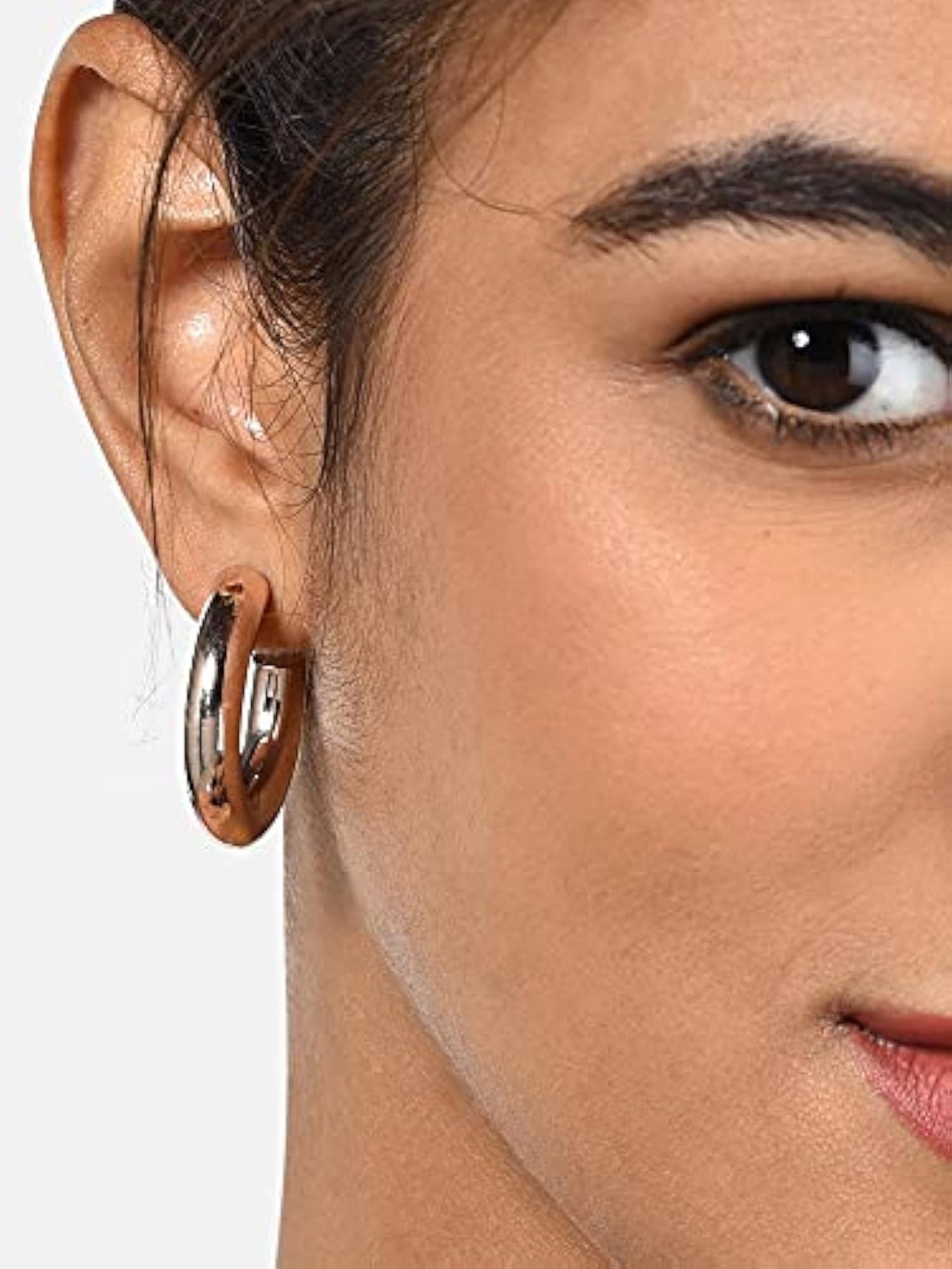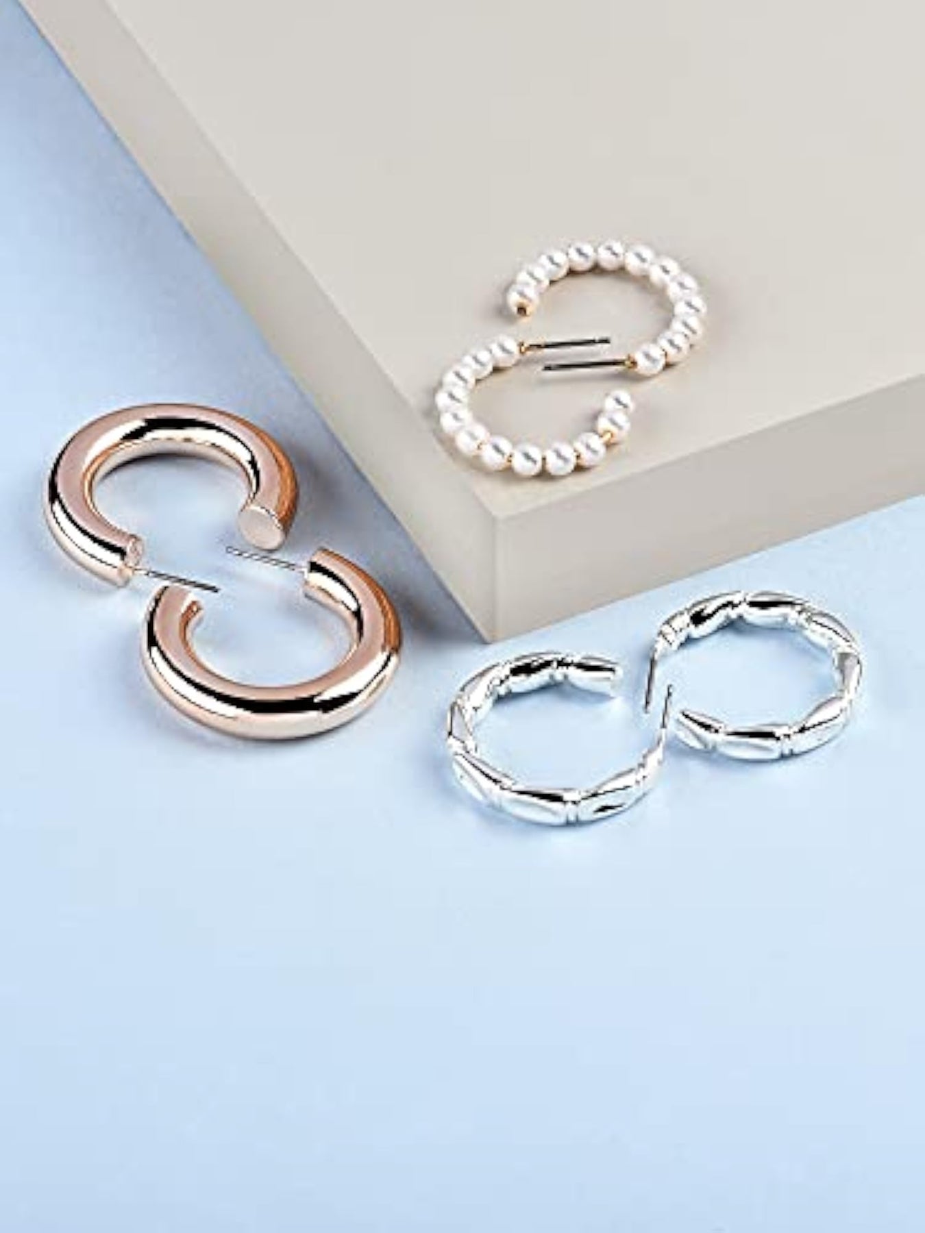 Elevate your style with this set of 3 semi-hoop earrings featuring a modern design in rose gold, silver, and tone. Perfect for adding a touch of elegance to any outfit.