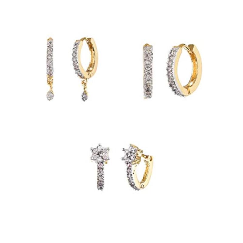 Elevate your style with this stunning set of 3 gold-plated hoop earrings featuring sparkling AD studded detailing. Perfect for adding a touch of glamour to any outfit.