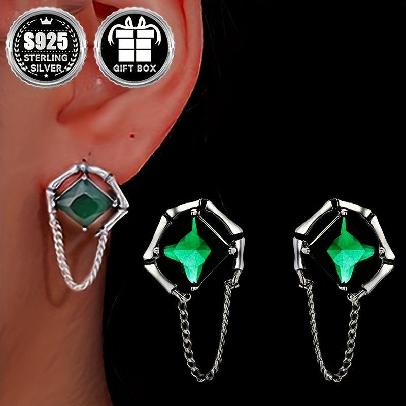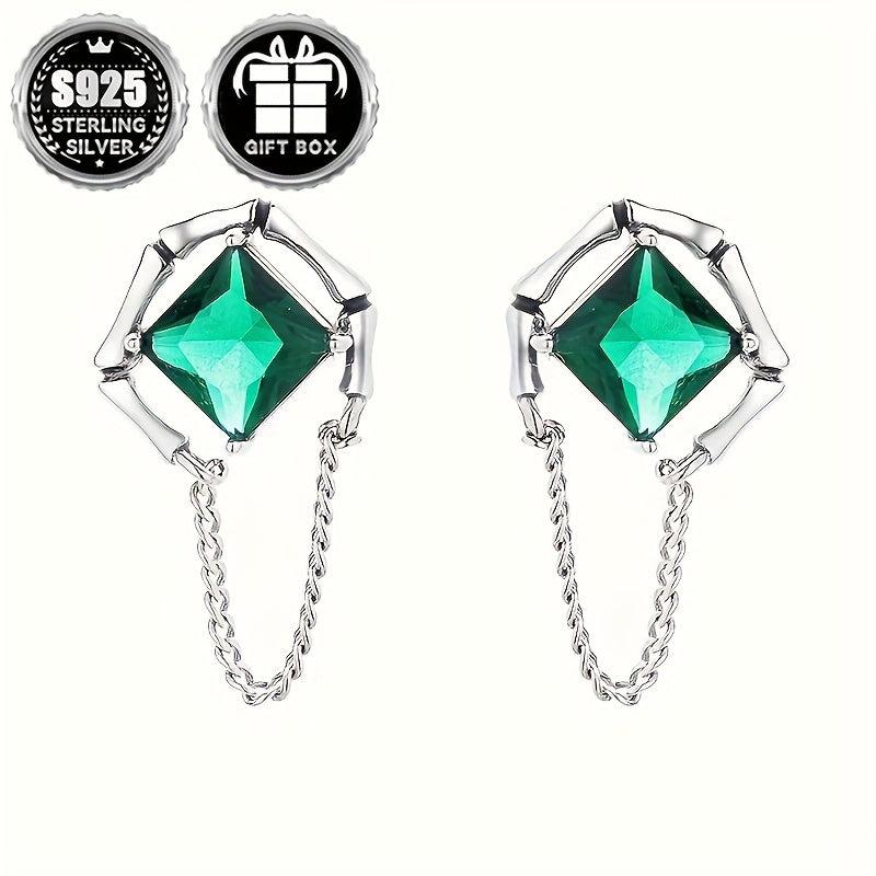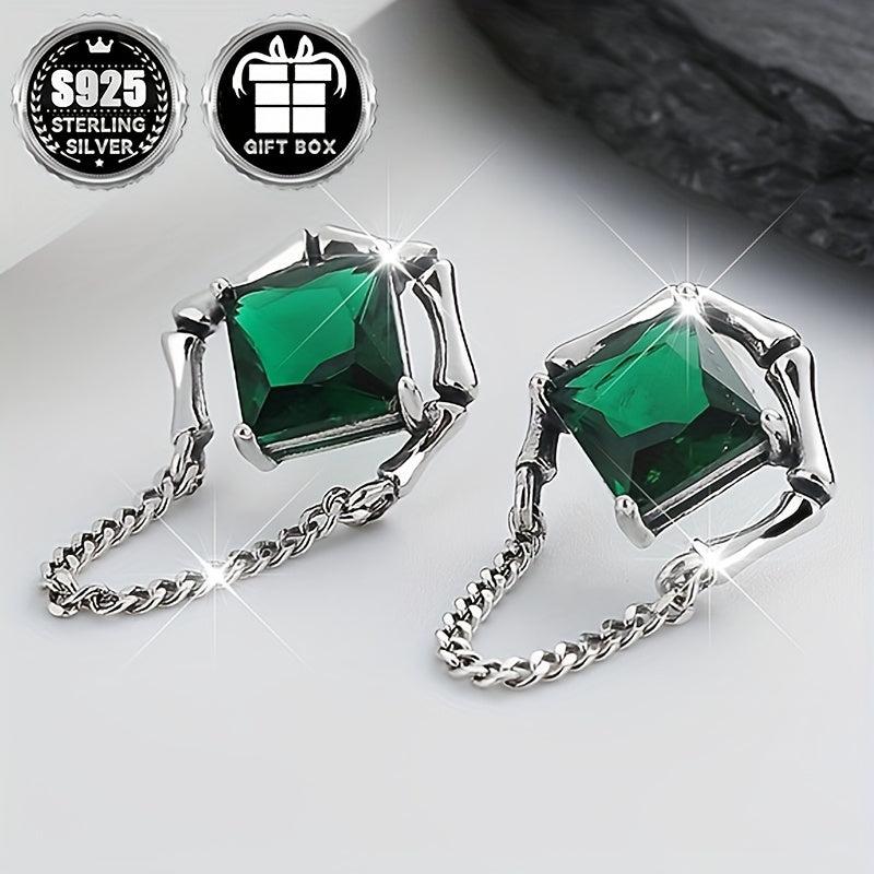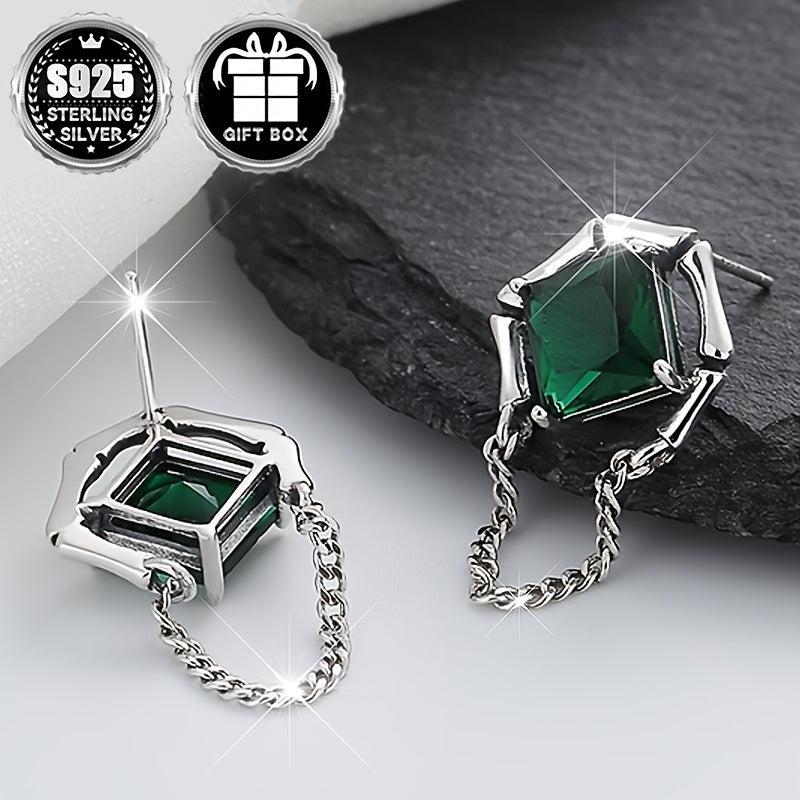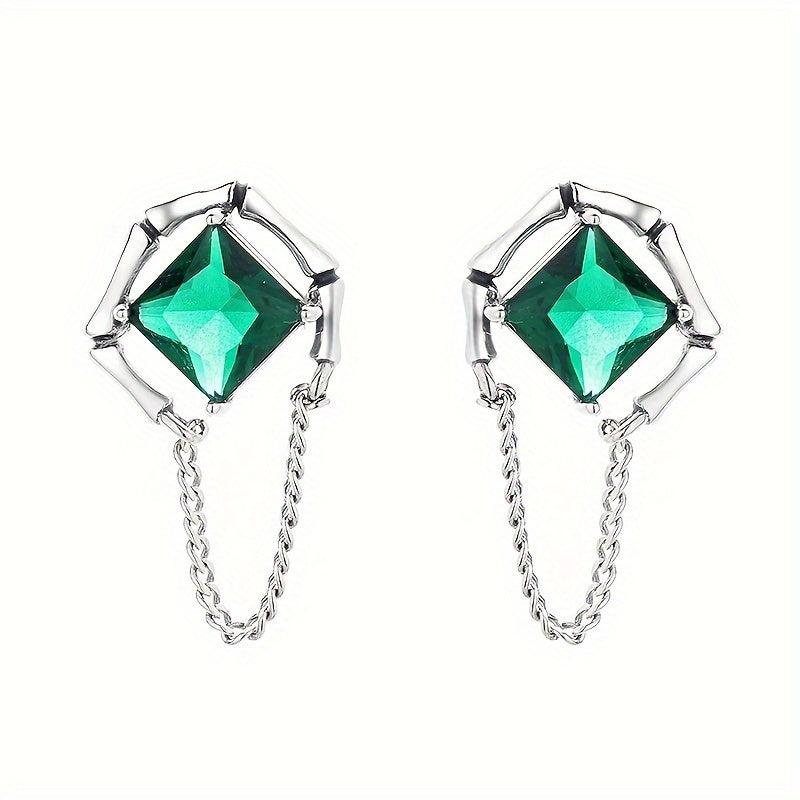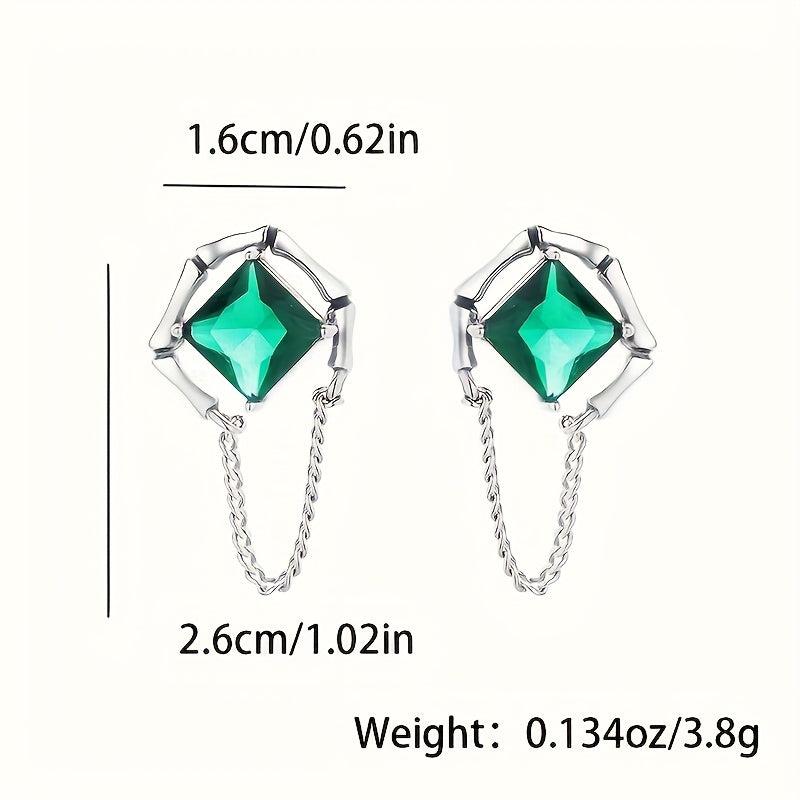 Add a touch of glamour with these vintage rhombus shape earrings featuring faux emerald green cubic zirconia accents. Perfect for a night out or a special occasion.
