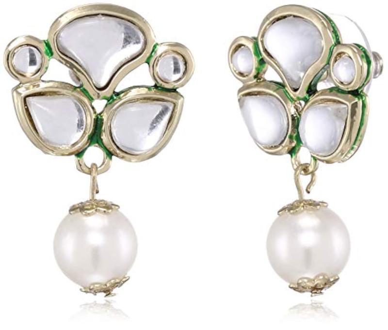 Add a touch of elegance to your look with these fashionable short kundan earrings featuring pearl accents.