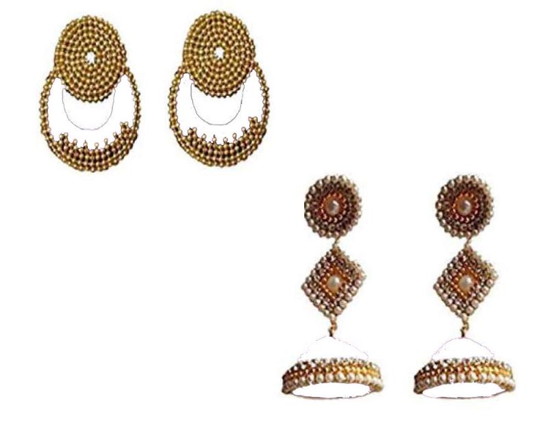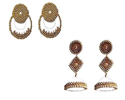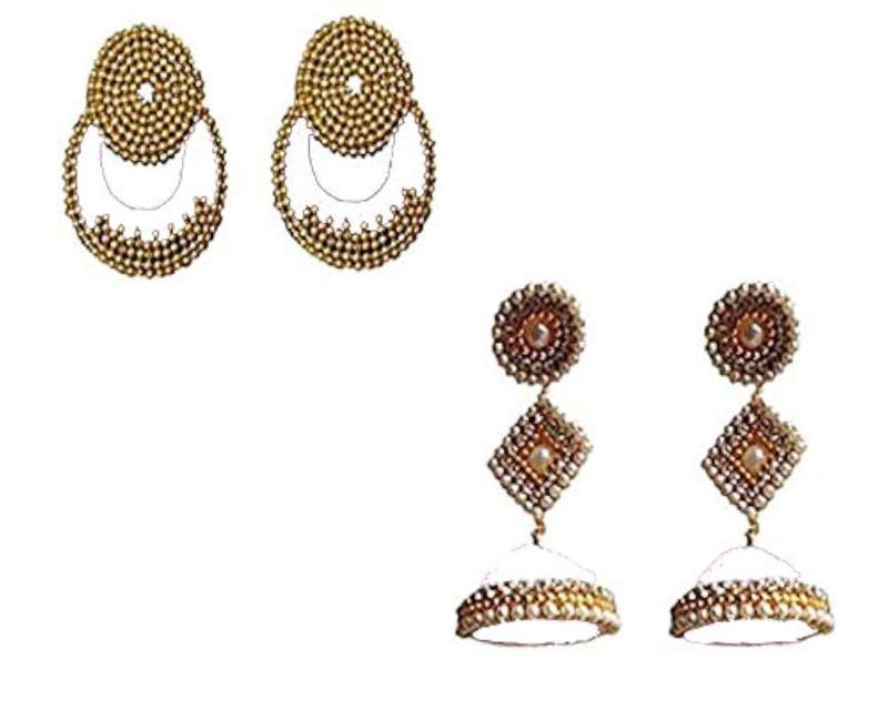 This set includes two different sets of earrings - Silk Jhumka Earrings and Chandbali Earrings. Perfect for adding a touch of elegance to any outfit.