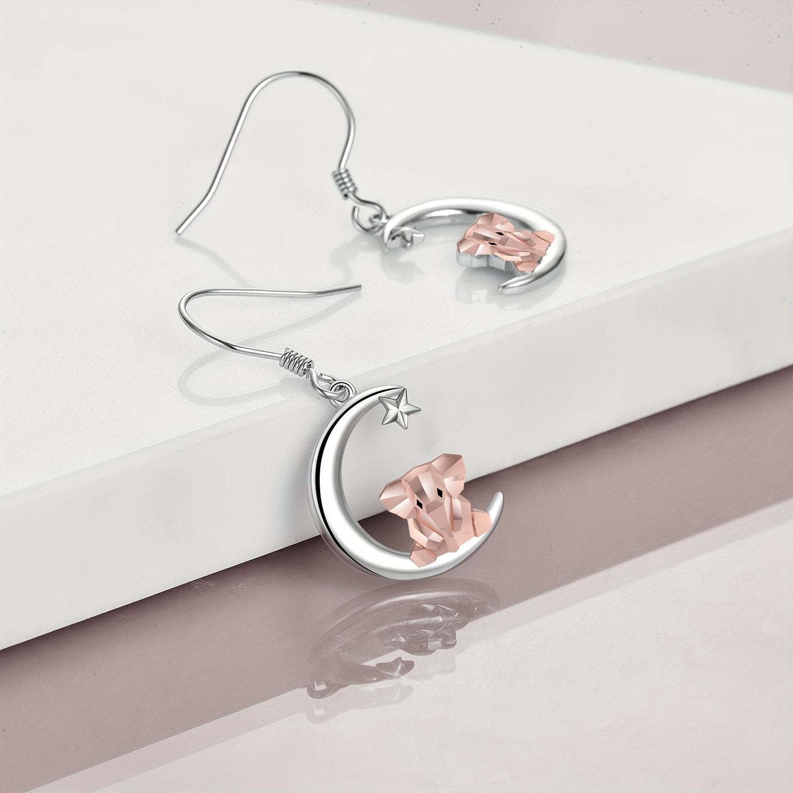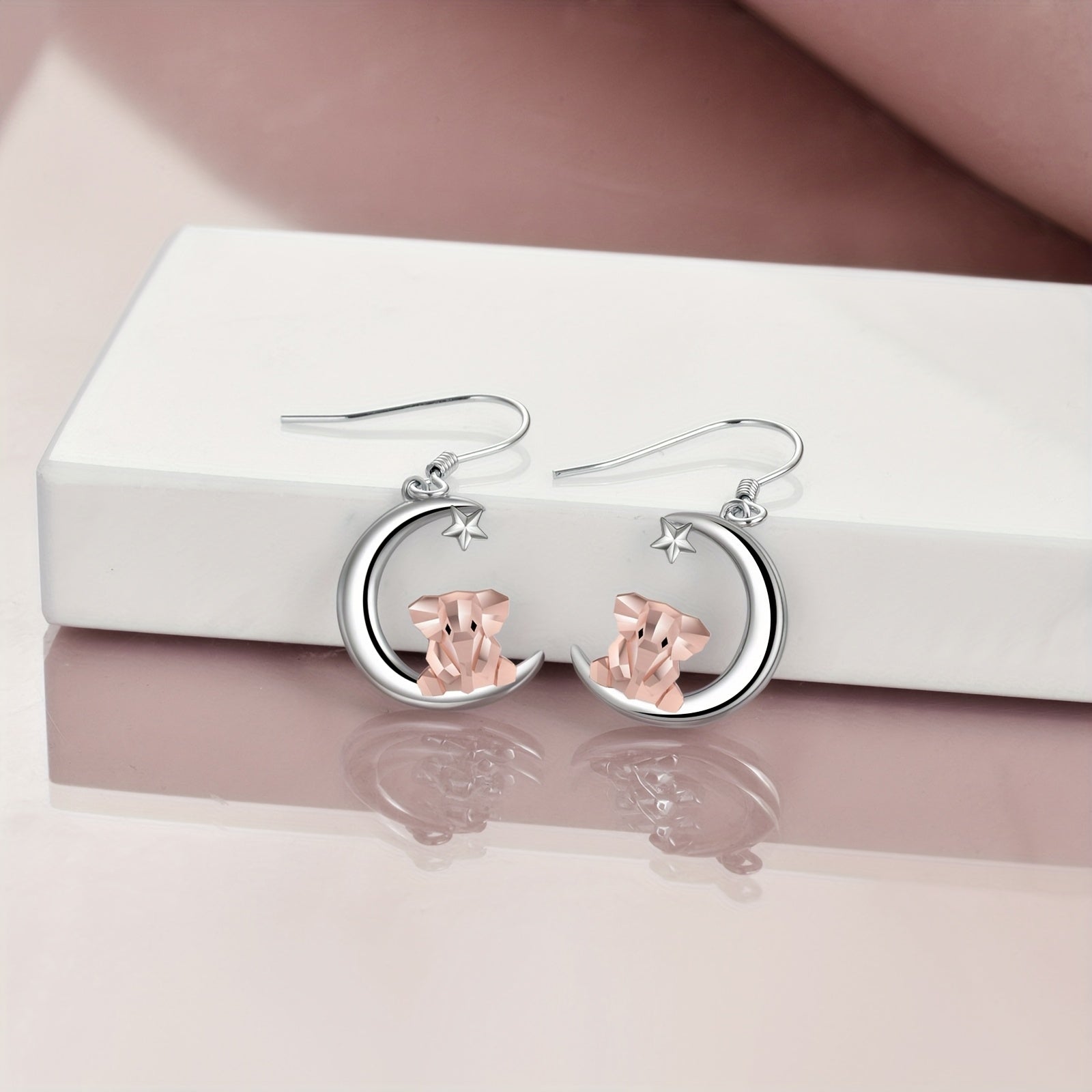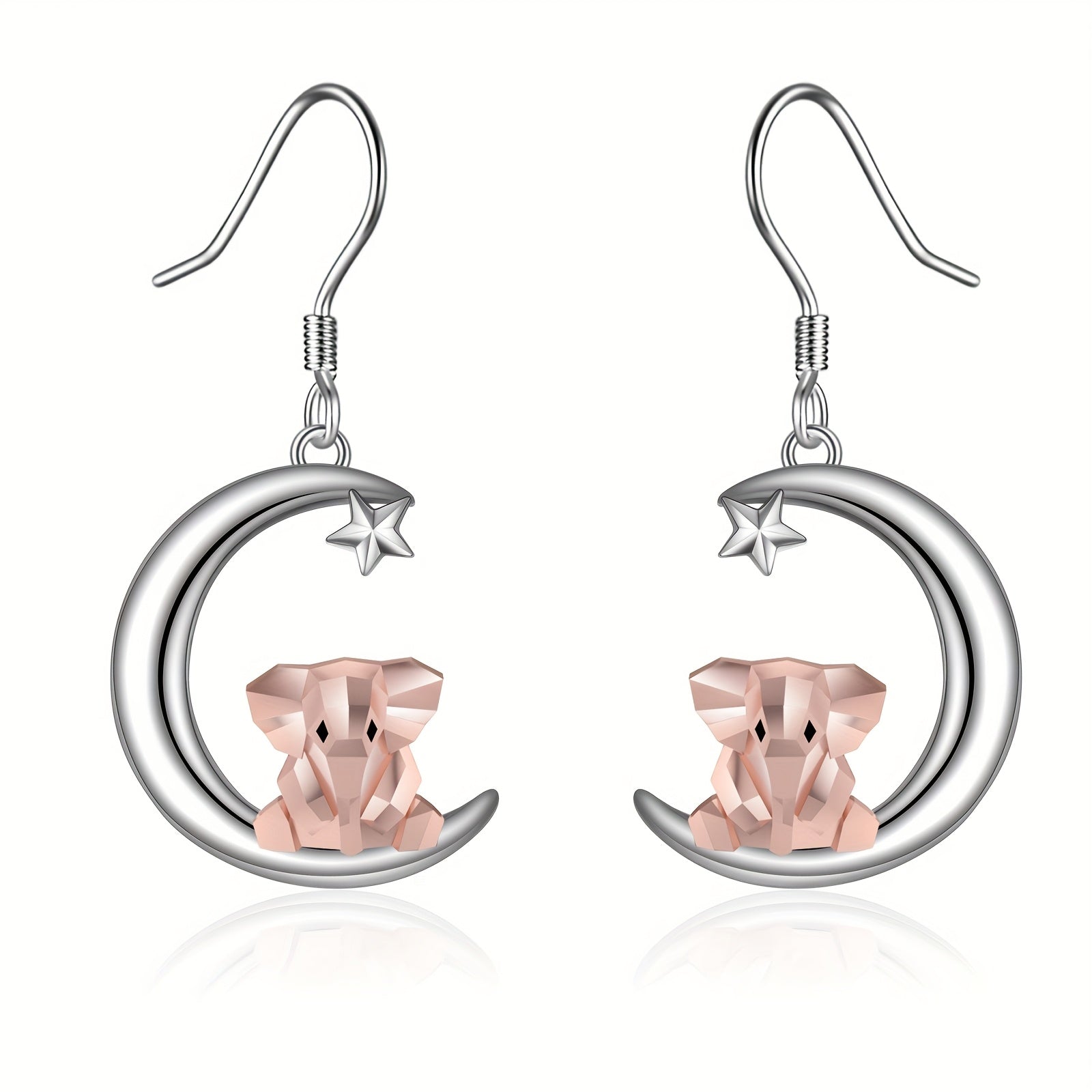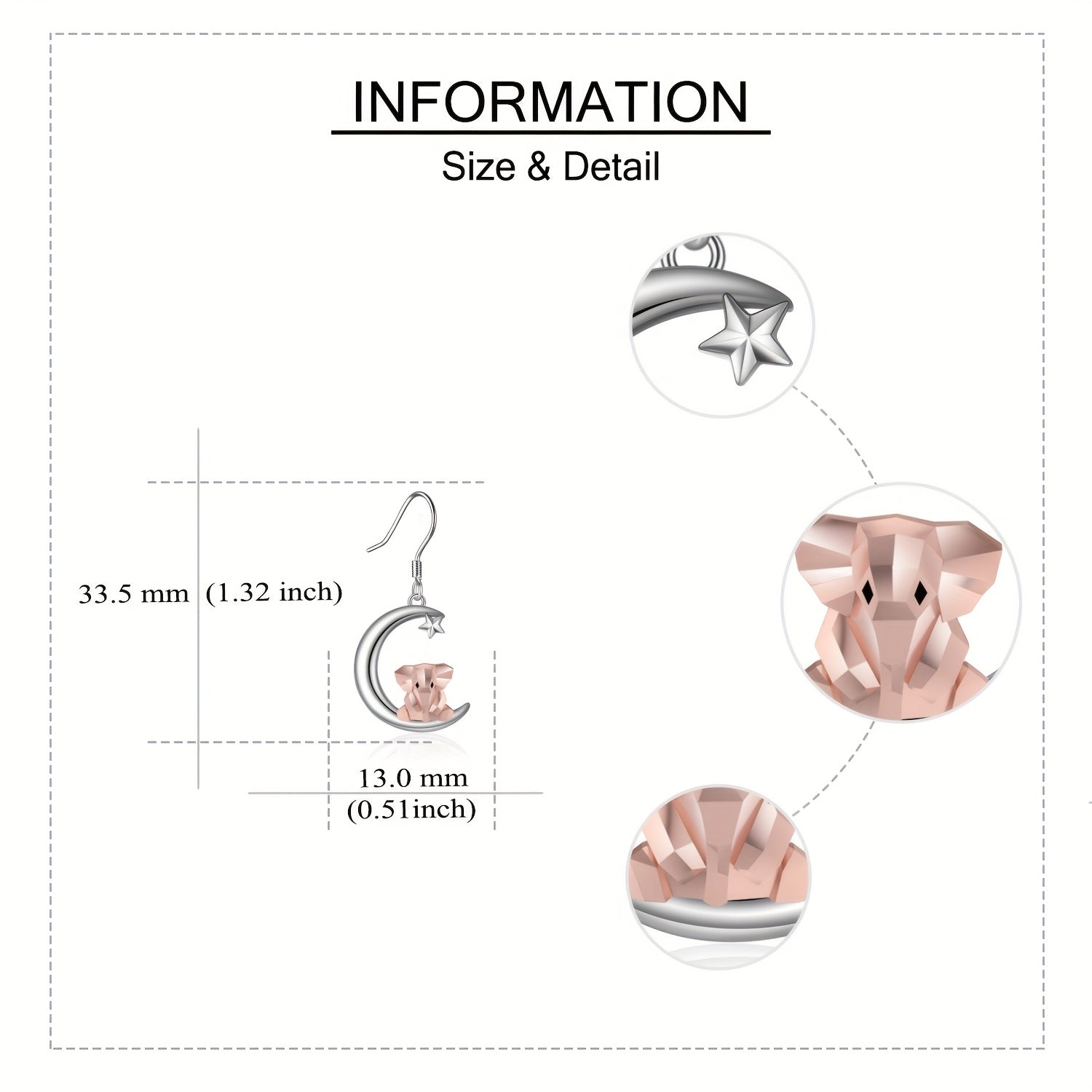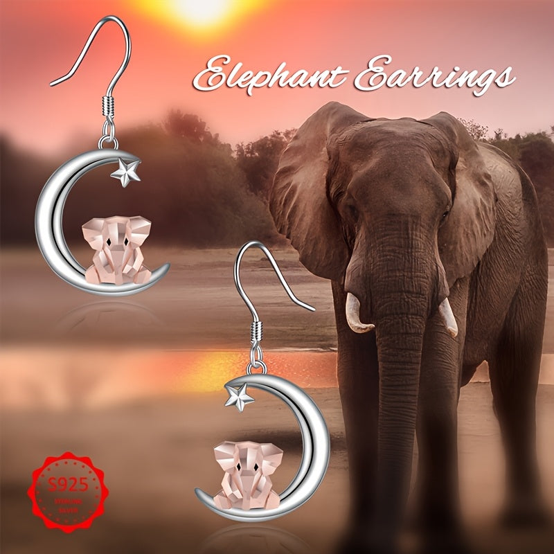These stunning sterling silver elephant earrings feature an origami design with a moon dangle drop. The perfect gift for mothers or women who love elephants.