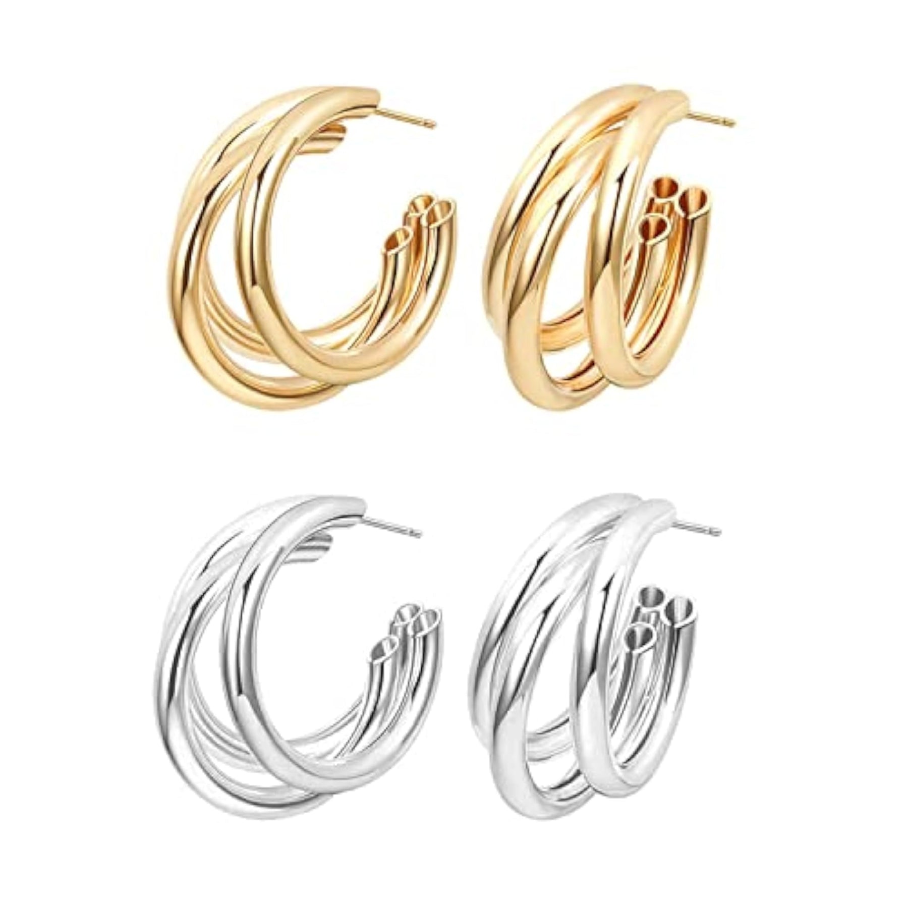 This stylish set includes two pairs of hoop earrings - one twisted design and one layered Bali style. Perfect birthday or anniversary gift for your wife.