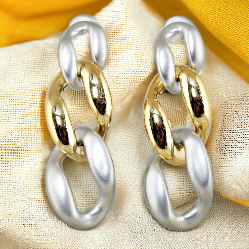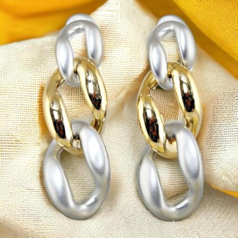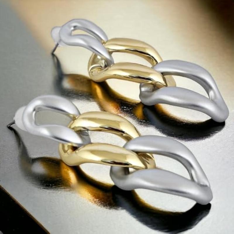 These stylish dangle earrings feature a Cuban link chain design. Perfect for any occasion, these earrings add a touch of elegance to your look.
