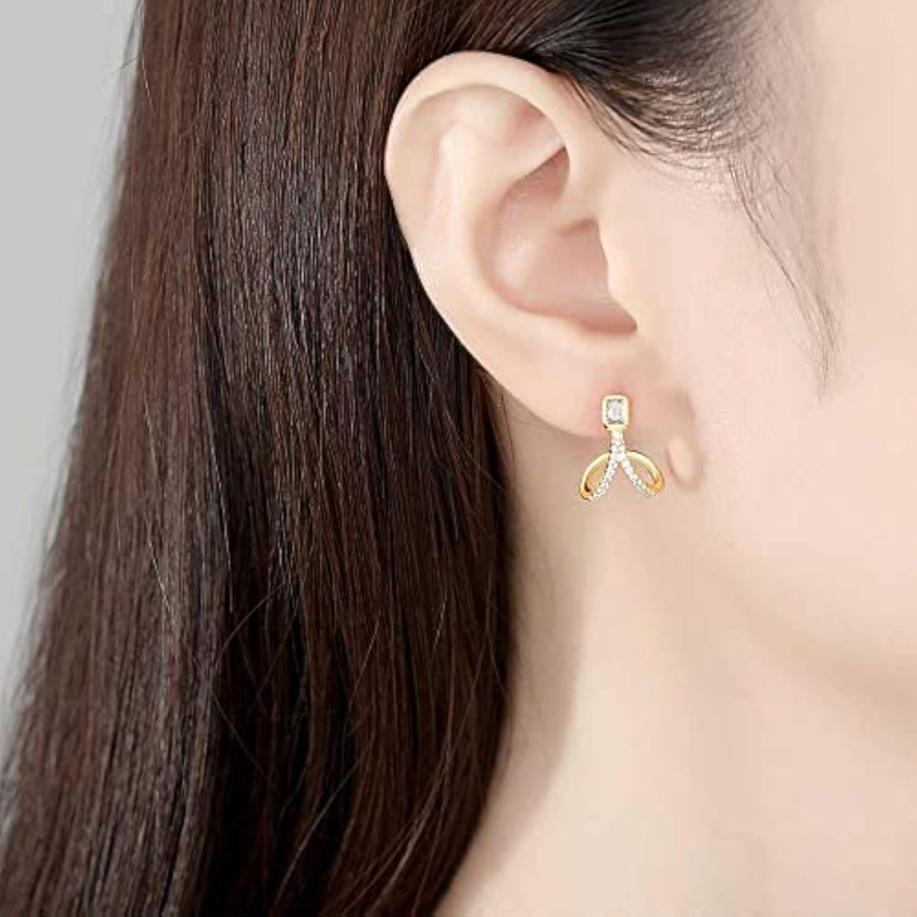 Elegant and stylish upside-down earrings with cubic zirconia studs. Perfect for any occasion.