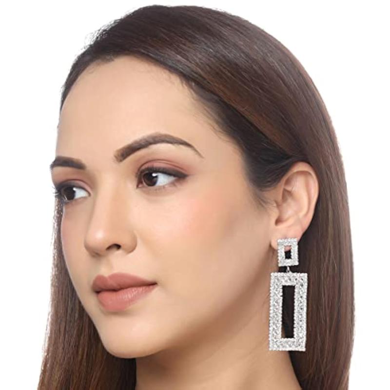 Make a statement with these stylish silver-plated drop earrings featuring cubic zirconia crystals. Perfect for adding a touch of elegance to any outfit.