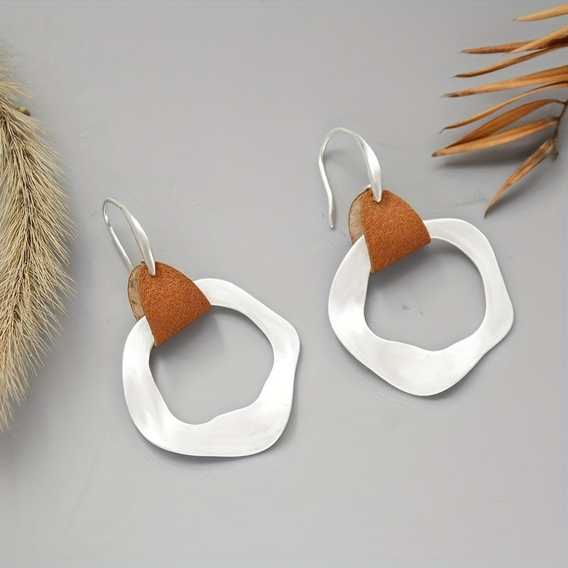 These creative earrings feature a unique irregular geometric design. They are silver plated and perfect for men and women.