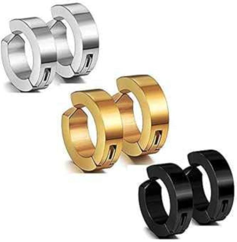 These stylish silver earrings are perfect for gents or as a gift for your boyfriend or girlfriend. They feature a mix of studs and hoops for a versatile look.