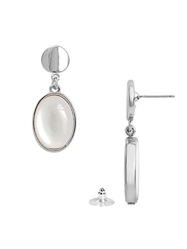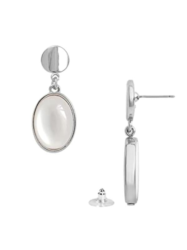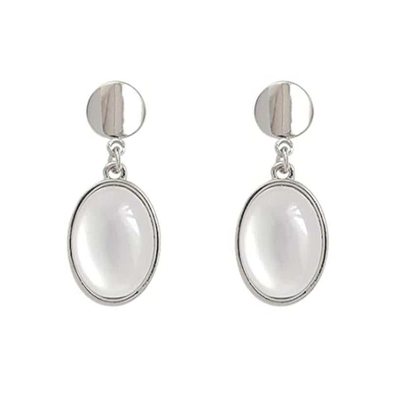 Add a touch of elegance with these silver tone clip-on stud earrings featuring a round stone drop. Perfect for any occasion.