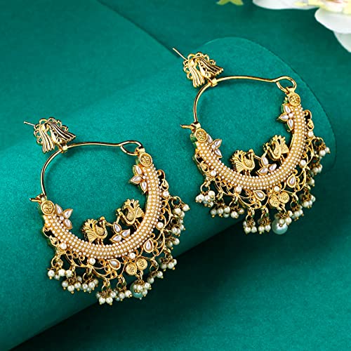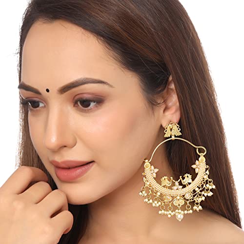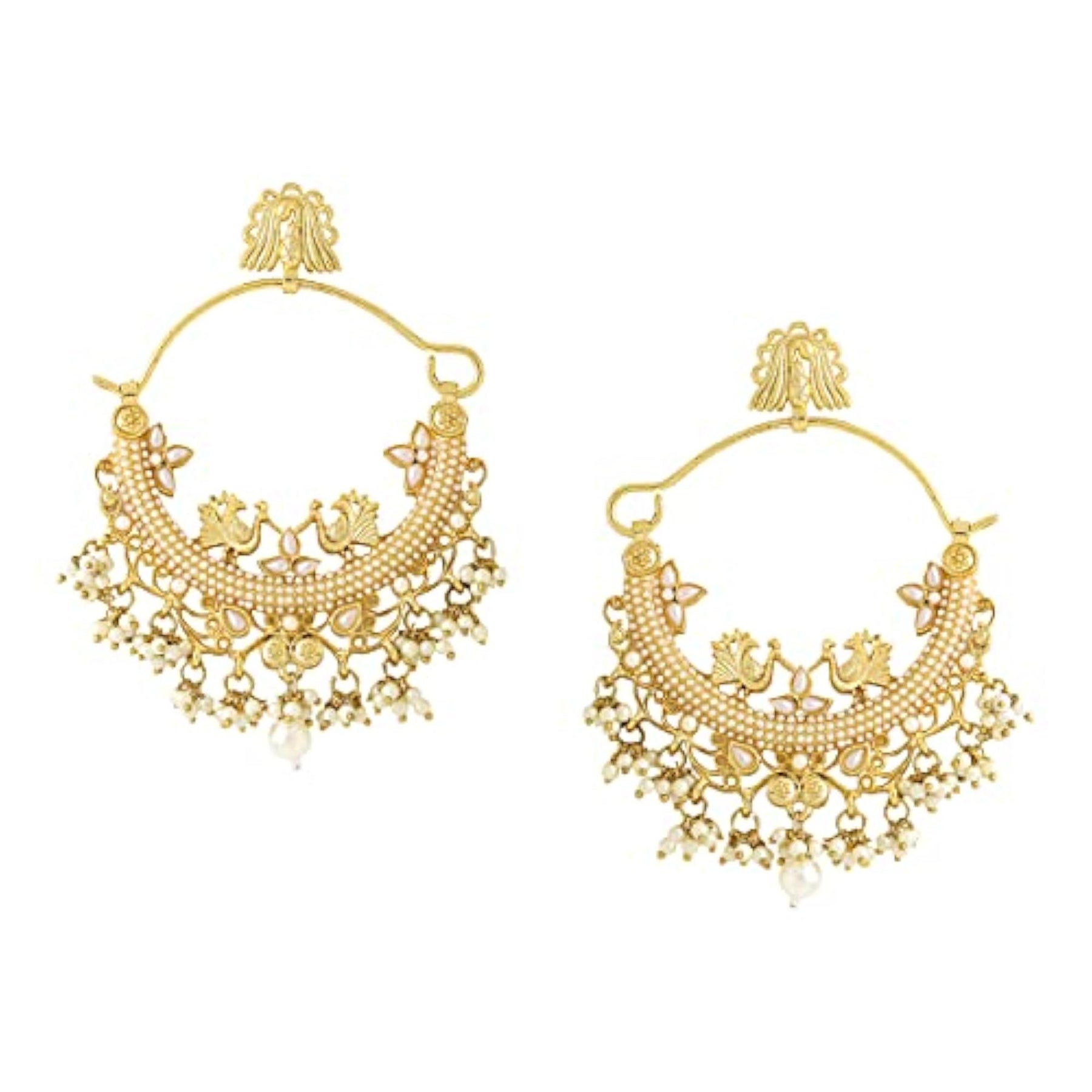 Add an elegant touch to your outfit with these silver toned chandbali earrings featuring multicolor stones and pearl studs. Perfect for special occasions.
