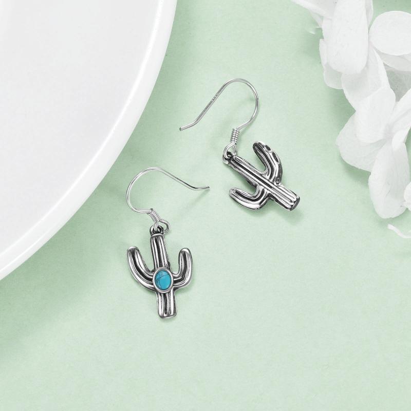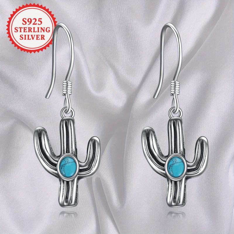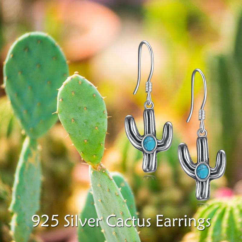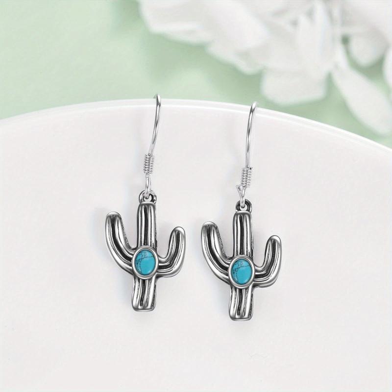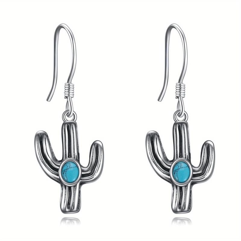 Add Southwestern charm to your outfit with these stunning silver cactus earrings featuring synthetic turquoise. Perfect for cowgirls and boho lovers.