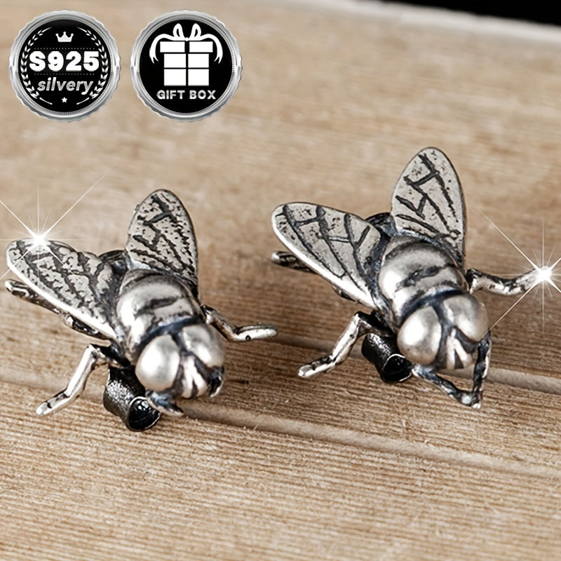 These 2pc925 pure silvery earrings are perfect for adding a touch of retro insect style to your outfit. They are lightweight and great for goth, punk, and Halloween parties.