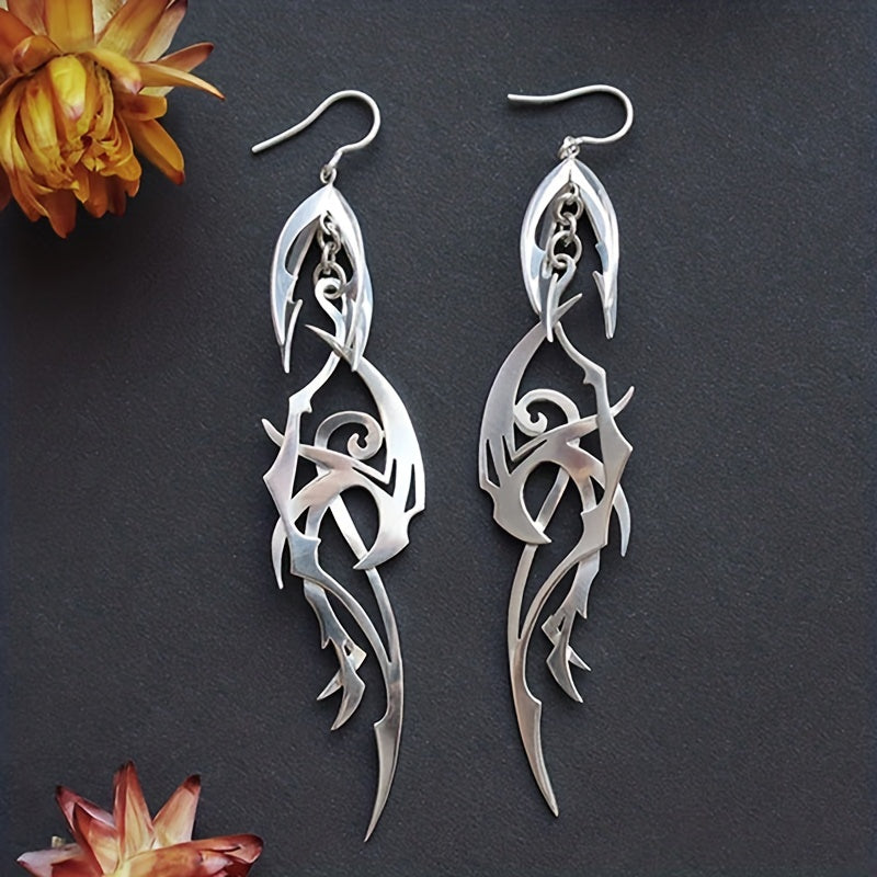 Elevate your daily casual look with these creative silvery abstract dangle earrings. Featuring a retro style design, these earrings are made of zinc alloy with a silvery plating, adding a touch of elegance to any outfit.