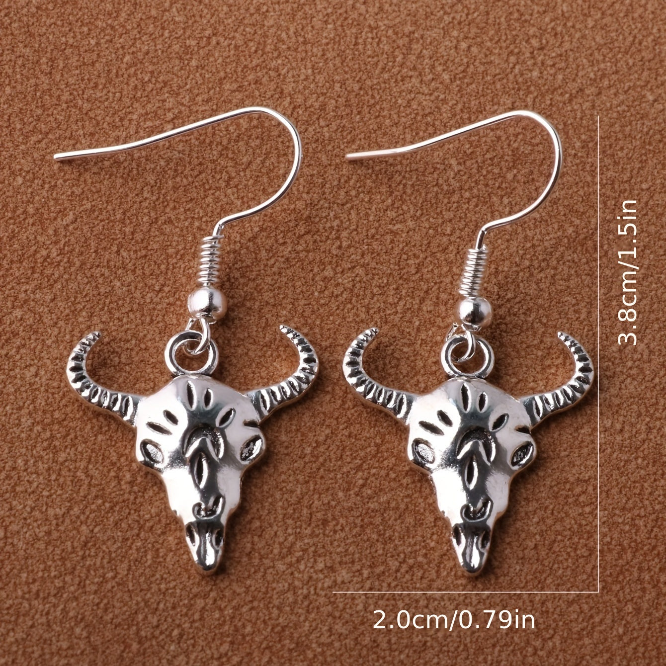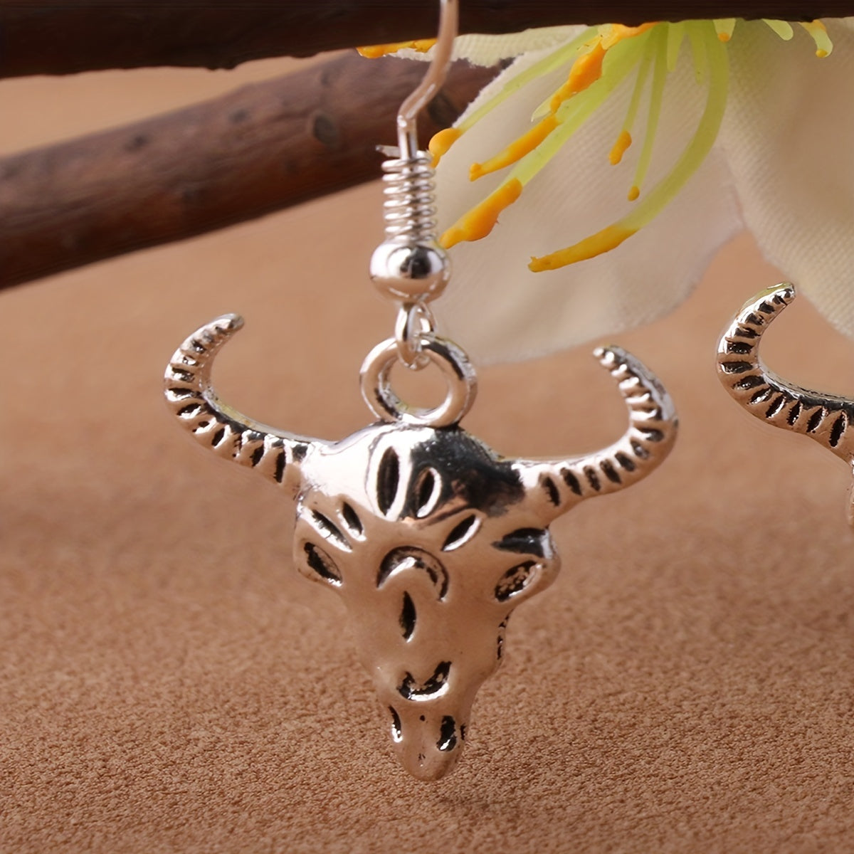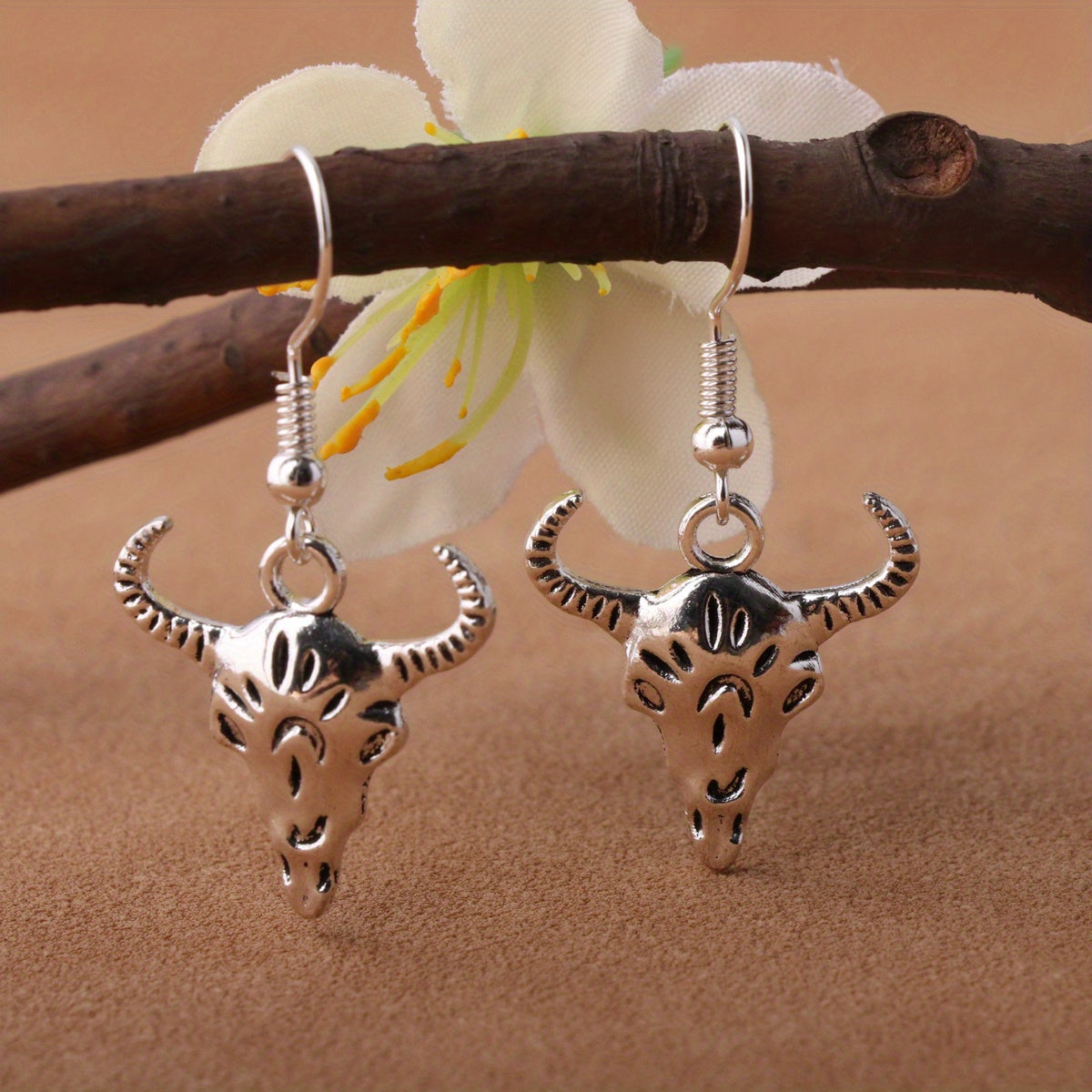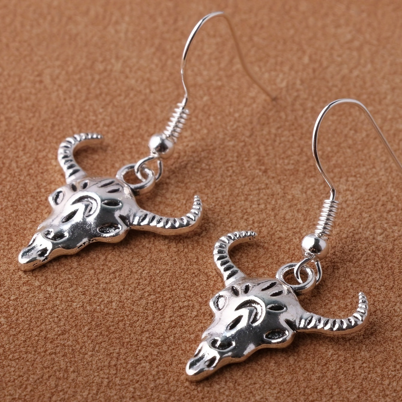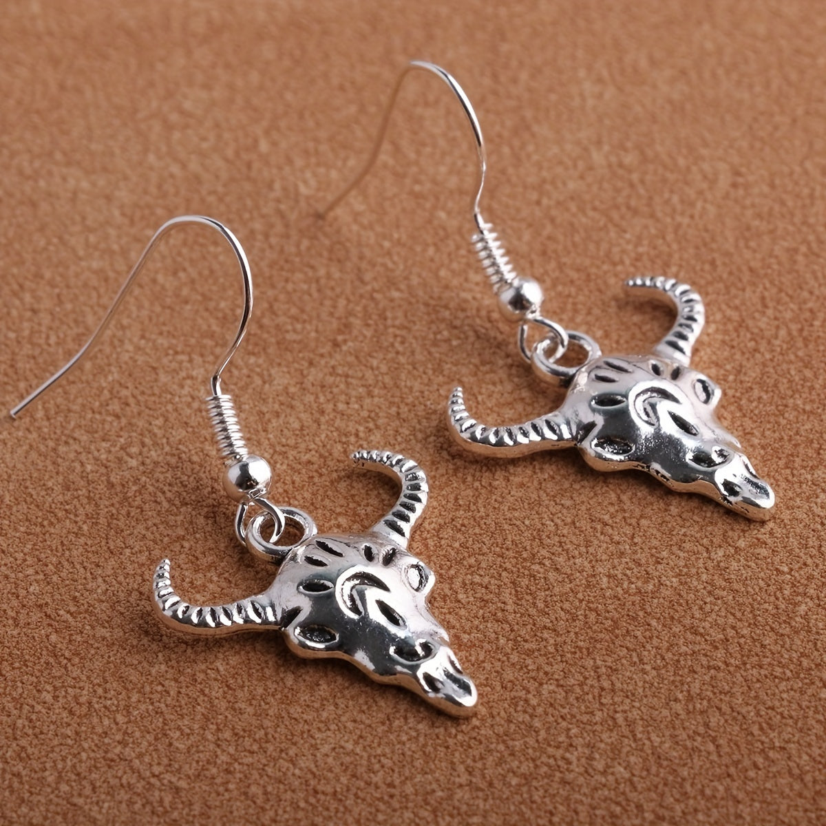These retro ethnic style dangle earrings feature a silvery bull head design, made of zinc alloy. They are a creative gift for women and girls.