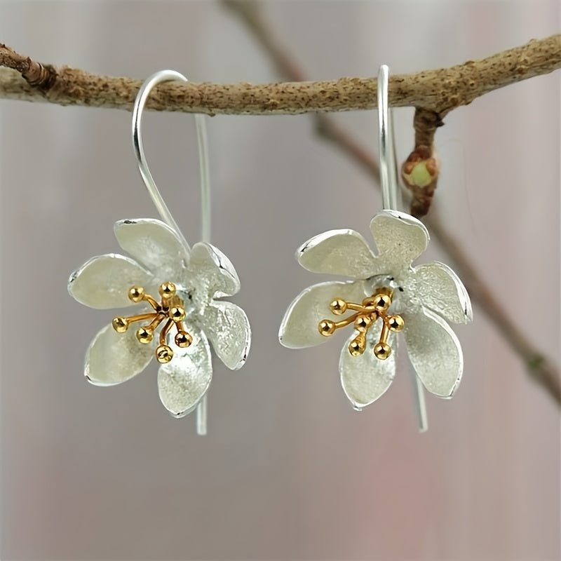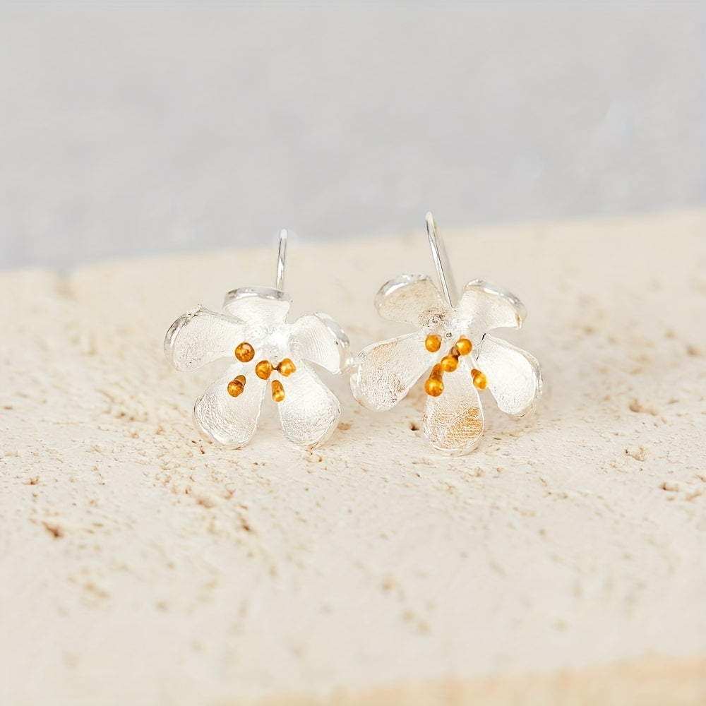 Silvery Daisy Hook Earrings Bohemian Style Jewelry Gift For Women Girls