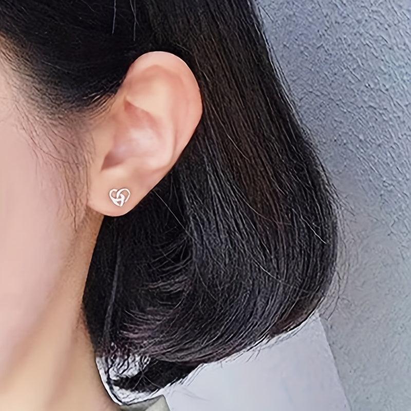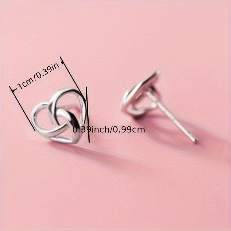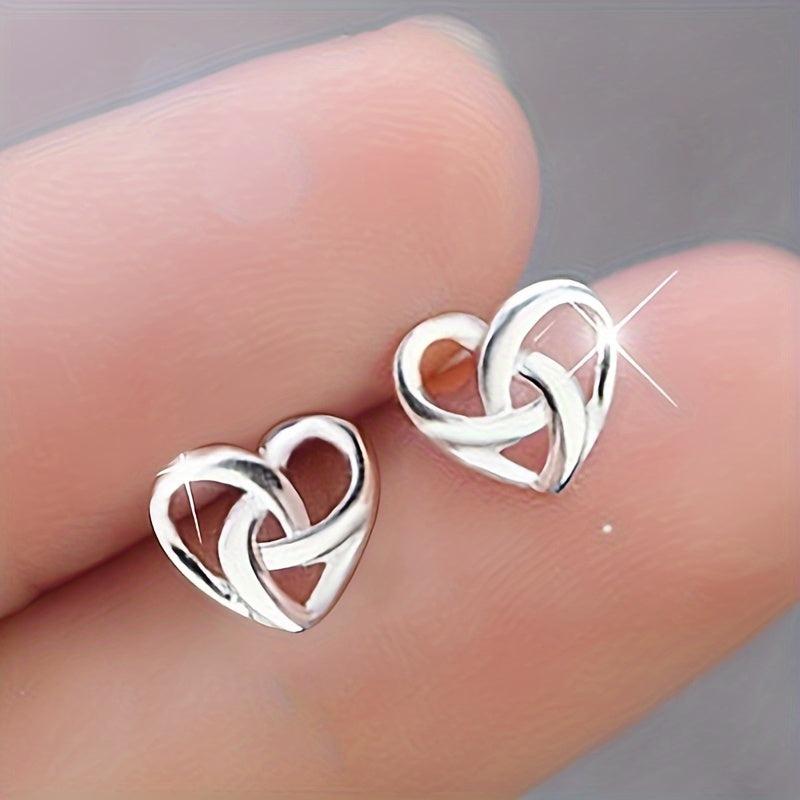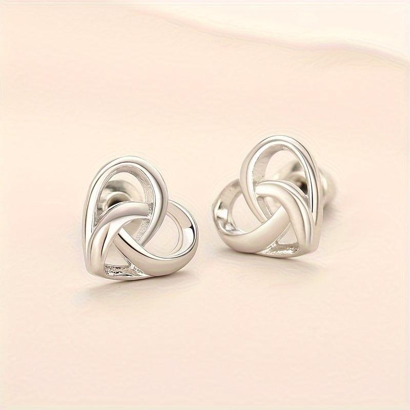 These knotted stud earrings feature a silvery hollow heart design, perfect for daily casual wear or as a Valentine's gift. Made from copper, these earrings are elegant and versatile.