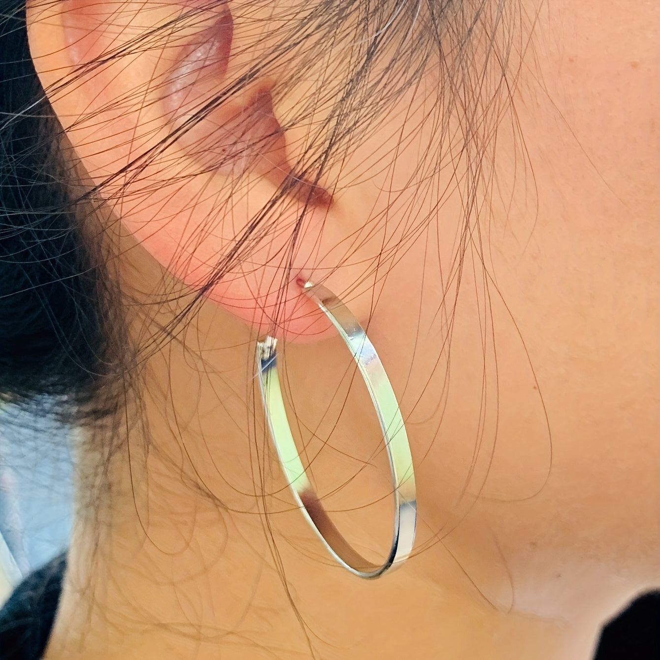 Add a touch of glamour to any outfit with these exaggerated silvery hoop earrings. Made of high-quality stainless steel, they are a perfect gift for women and girls.