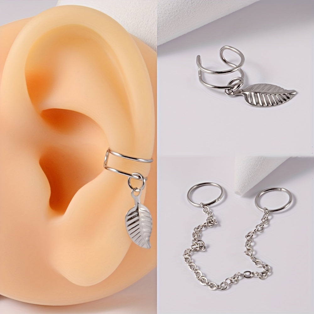 Enhance your look with this silvery leaf chain ear cuff, perfect for daily casual wear. The Y2K style adds a trendy touch, making it a great gift for women and girls.