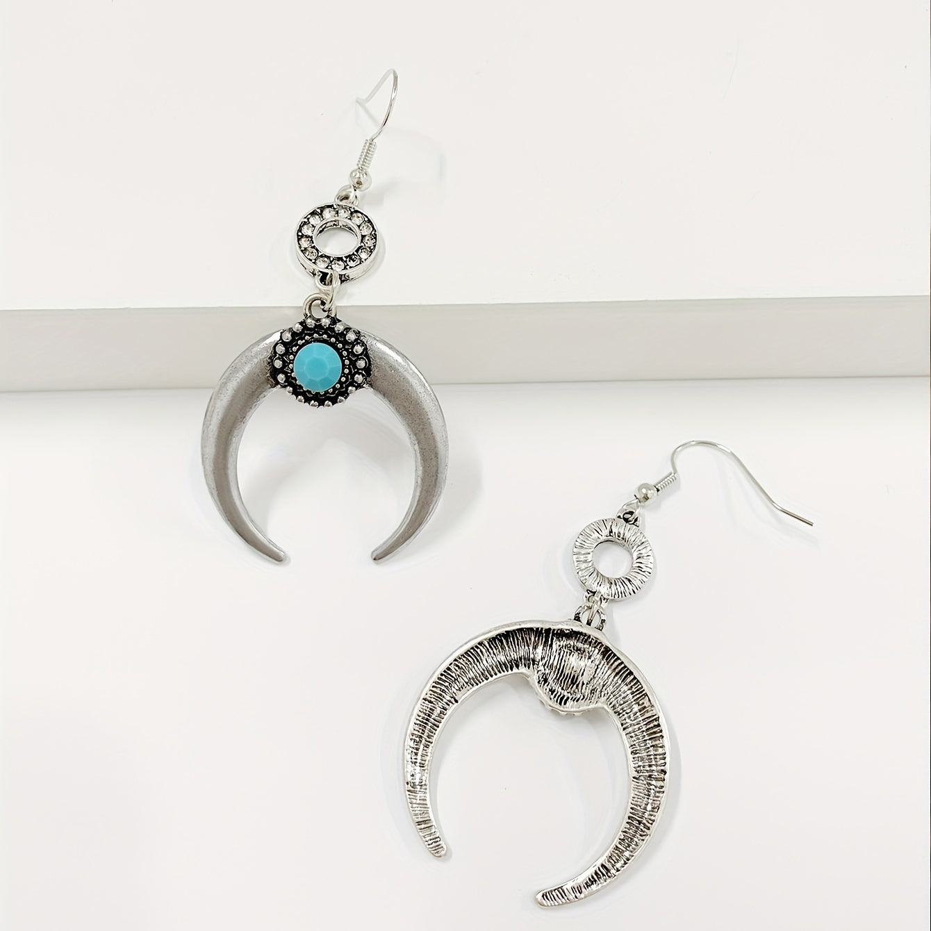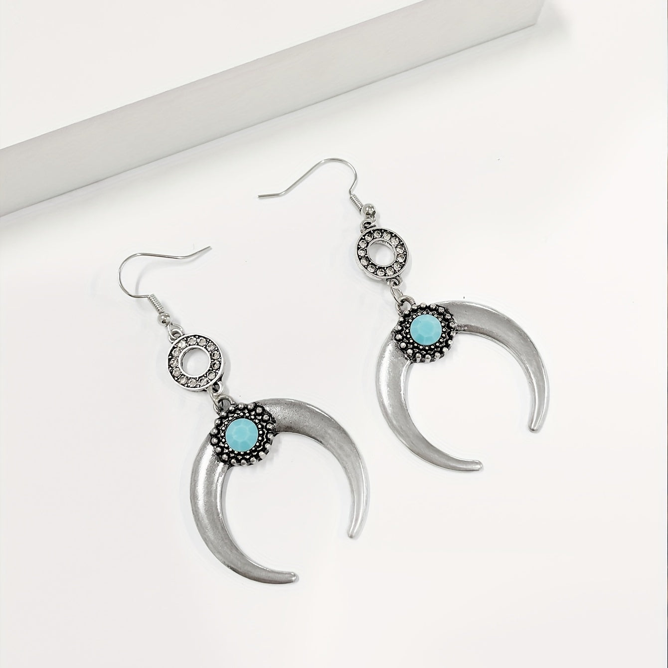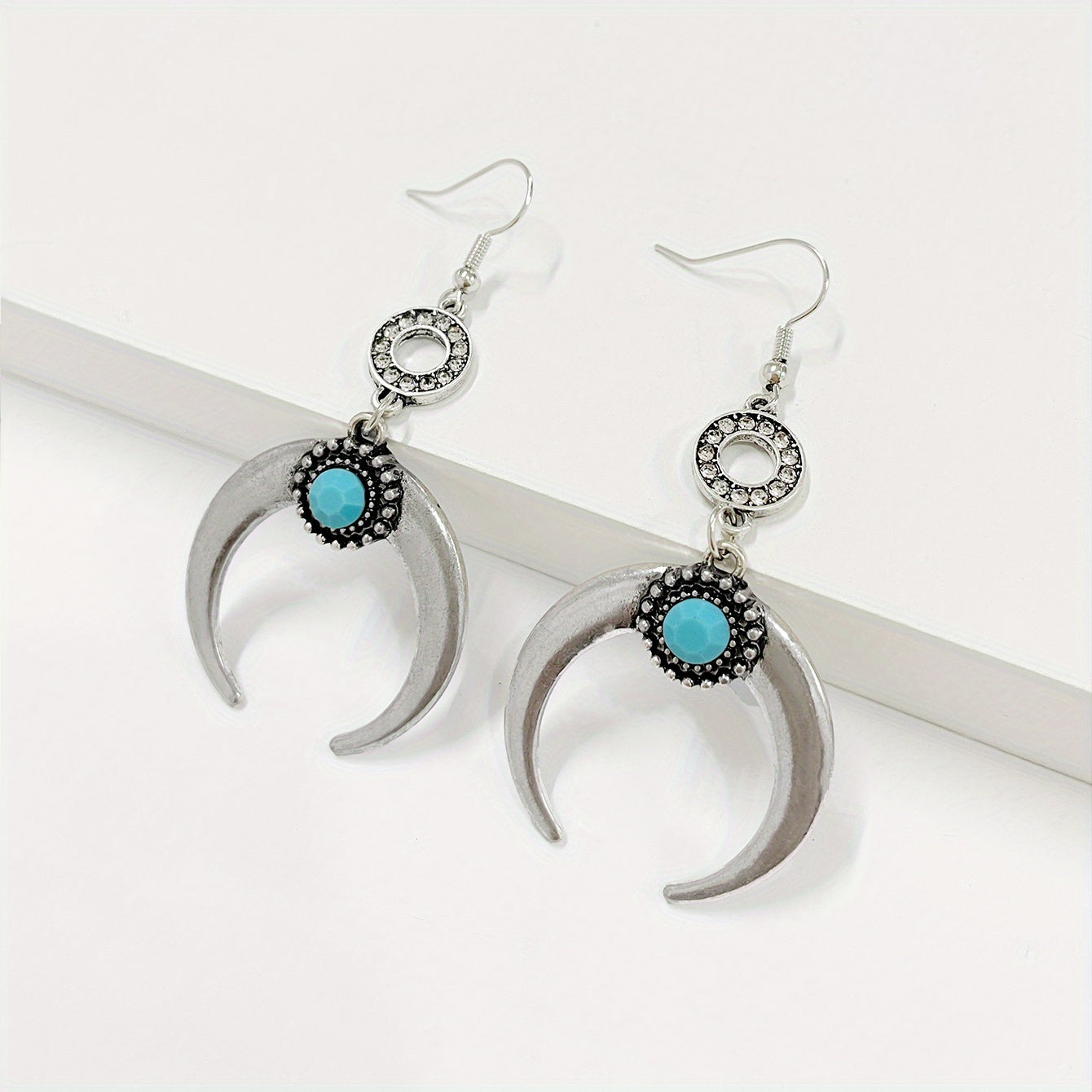 These dangle earrings feature a silvery moon design with turquoise decor, perfect for those who love bohemian ethnic style jewelry. Made of zinc alloy, these delicate earrings make a great gift for any female.