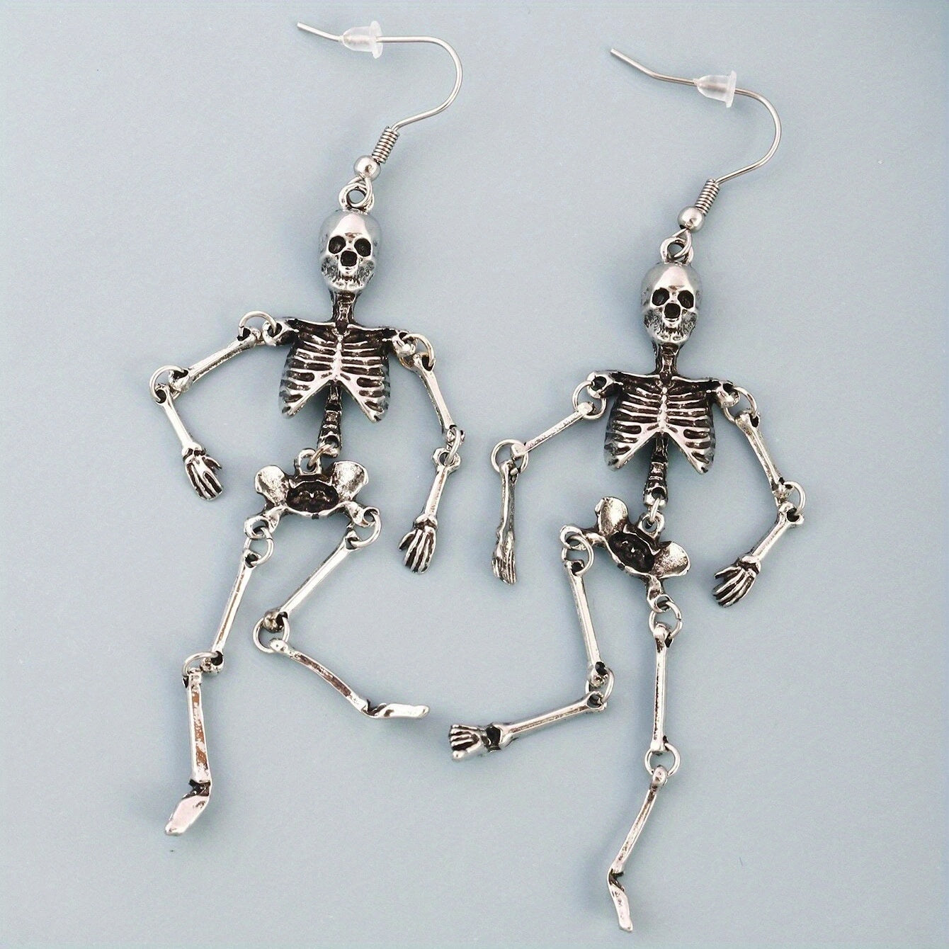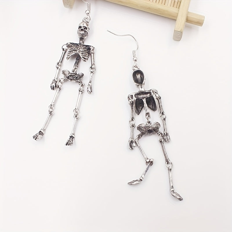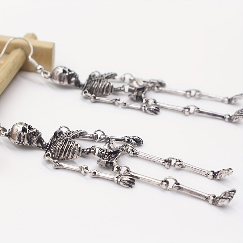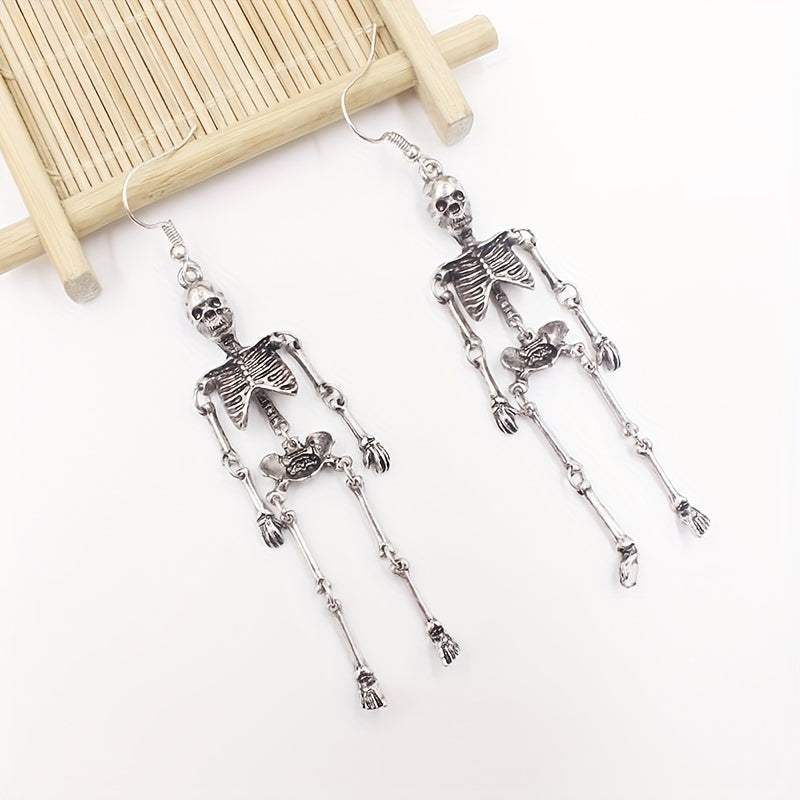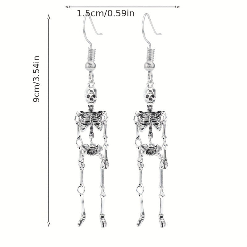 Add a touch of personality to your Halloween outfit with these retro punk style silvery skeleton dangle earrings. Made of high-quality zinc alloy, these earrings are perfect for adding a spooky flair to your look.