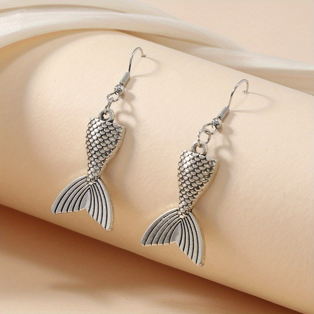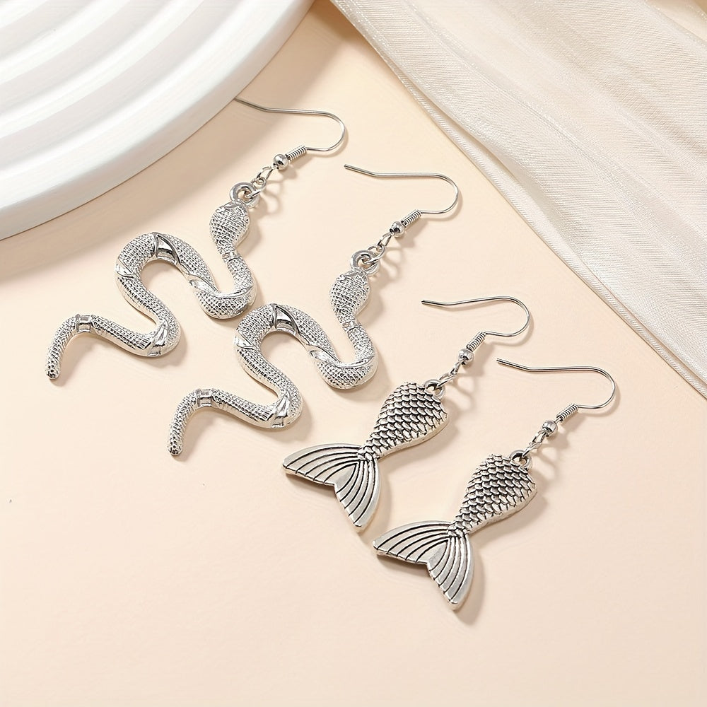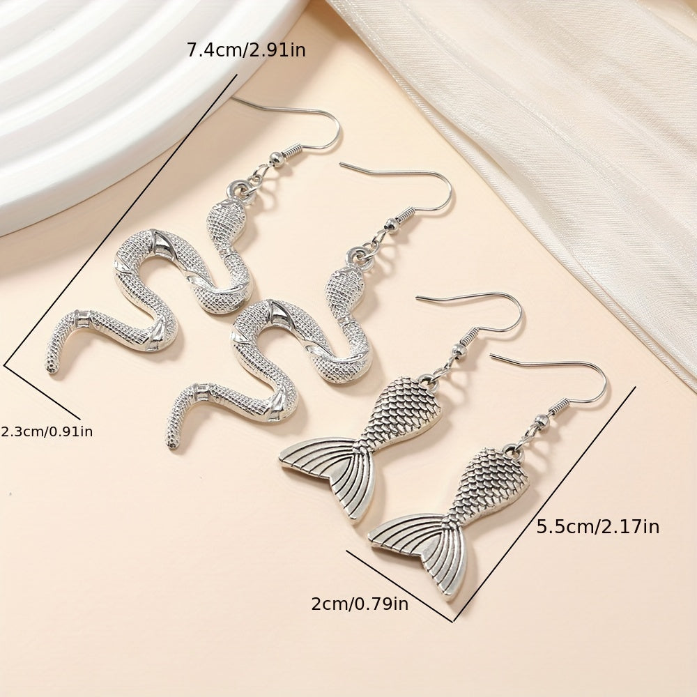 Add a touch of elegance to your outfit with these beautiful silvery snake fishtail dangle earrings. These minimalist earrings are a classic style accessory that make a great gift for women.