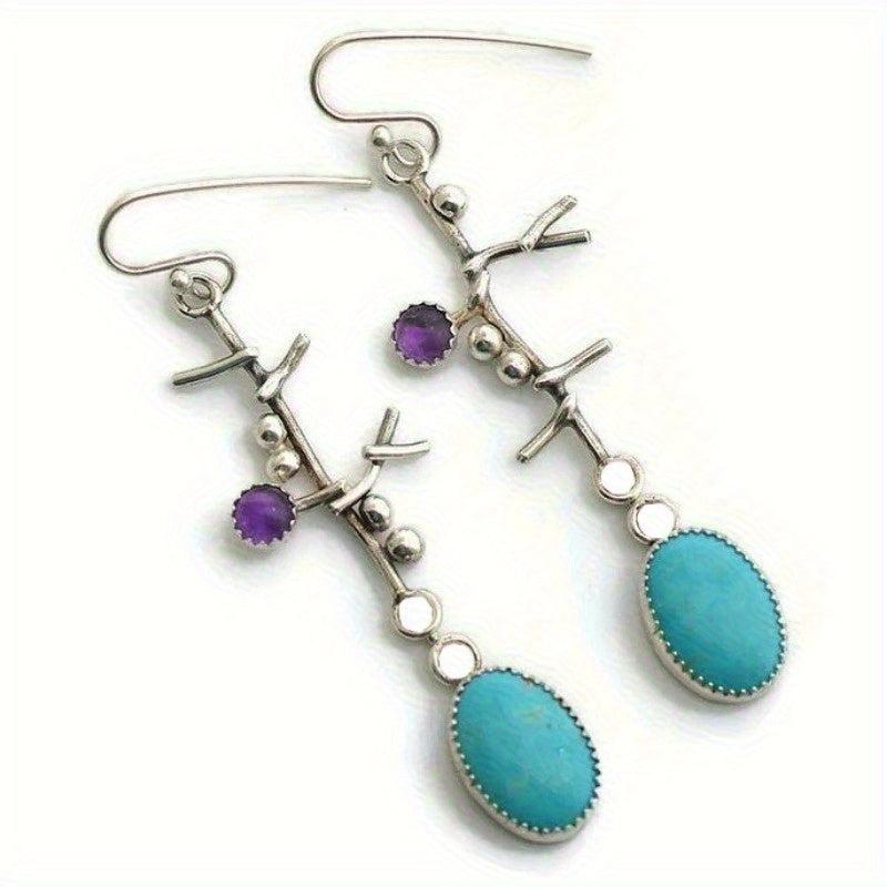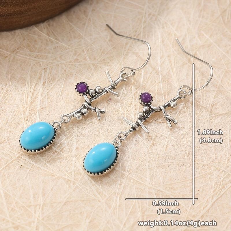 These exquisite earrings feature long silvery synthetic turquoise dangles hanging from oxidized tree branch designs. Handcrafted artisan jewelry for her.