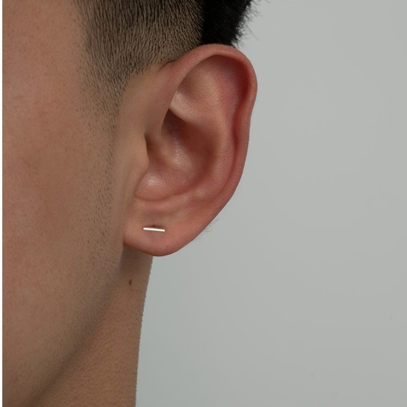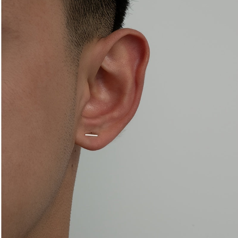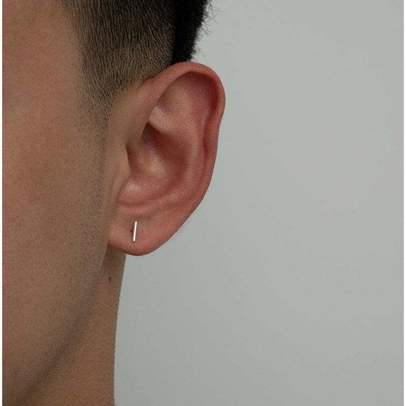 Enhance your style with these funky silvery vertical bar stud earrings designed for men. Perfect for adding a unique touch to your look.