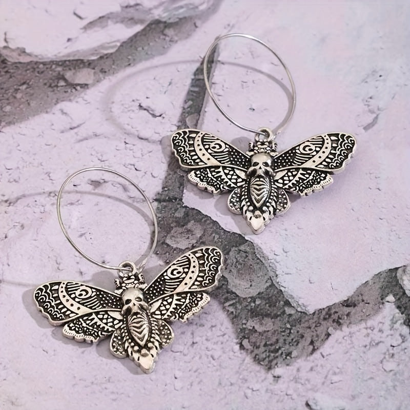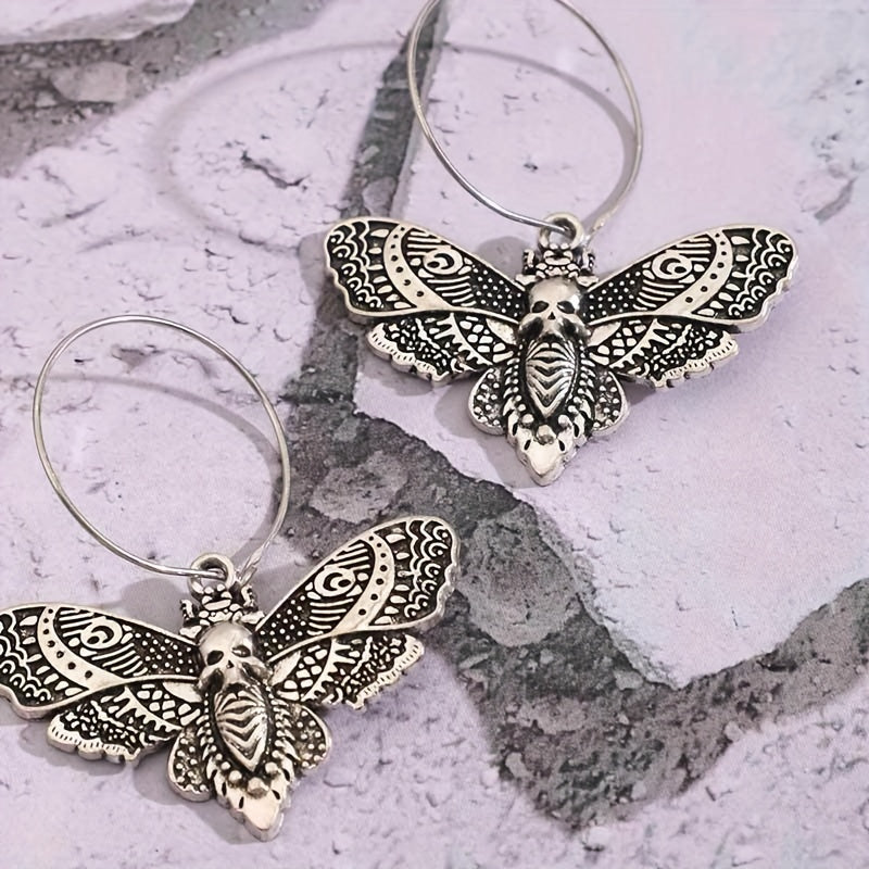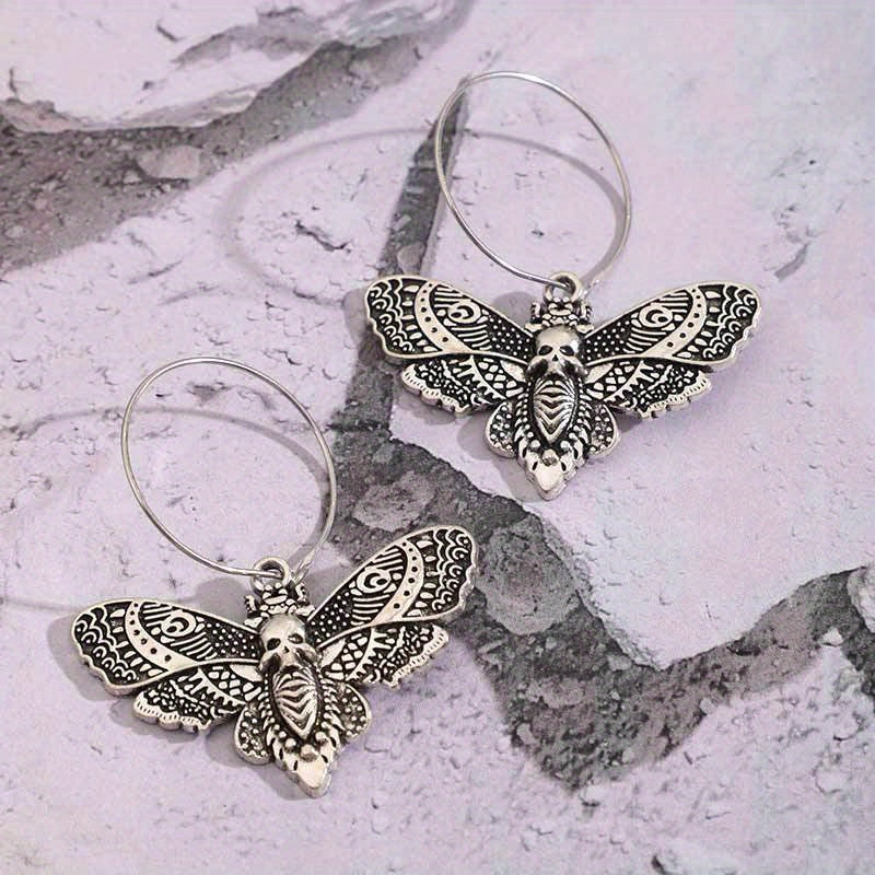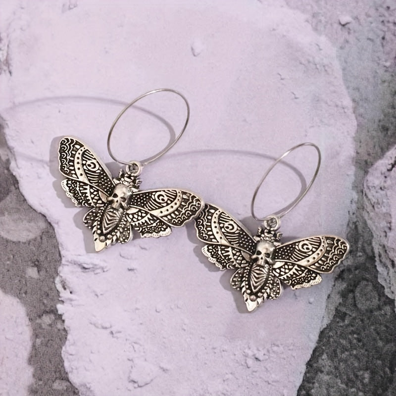These dangle earrings are a creative and stylish accessory for Halloween. Made of zinc alloy, they feature a skull and butterfly design with a retro gothic style. Perfect for adding a unique touch to any outfit.