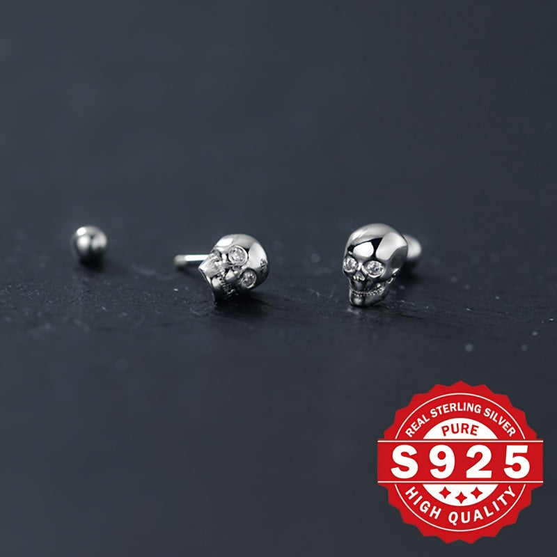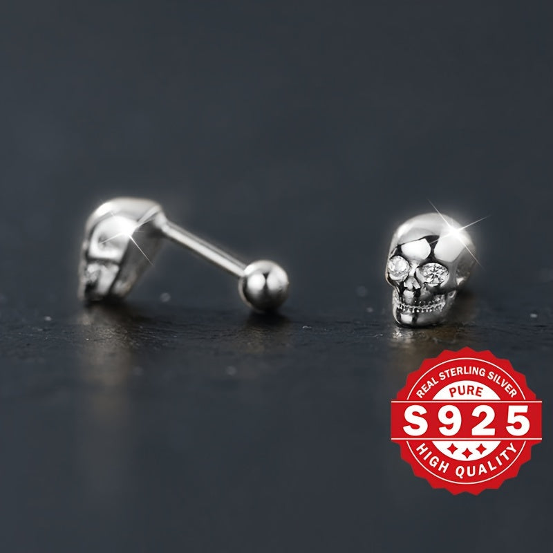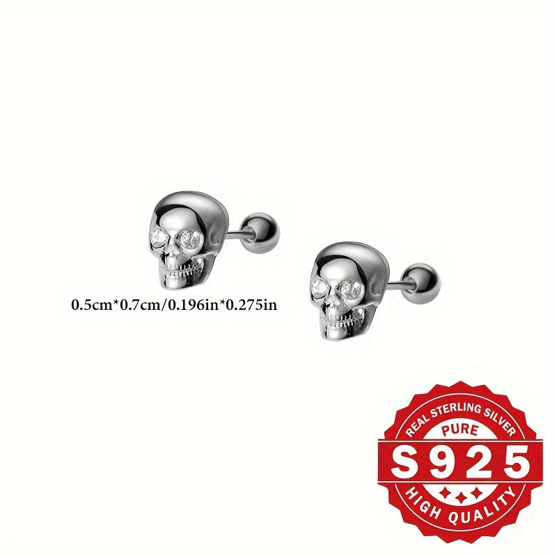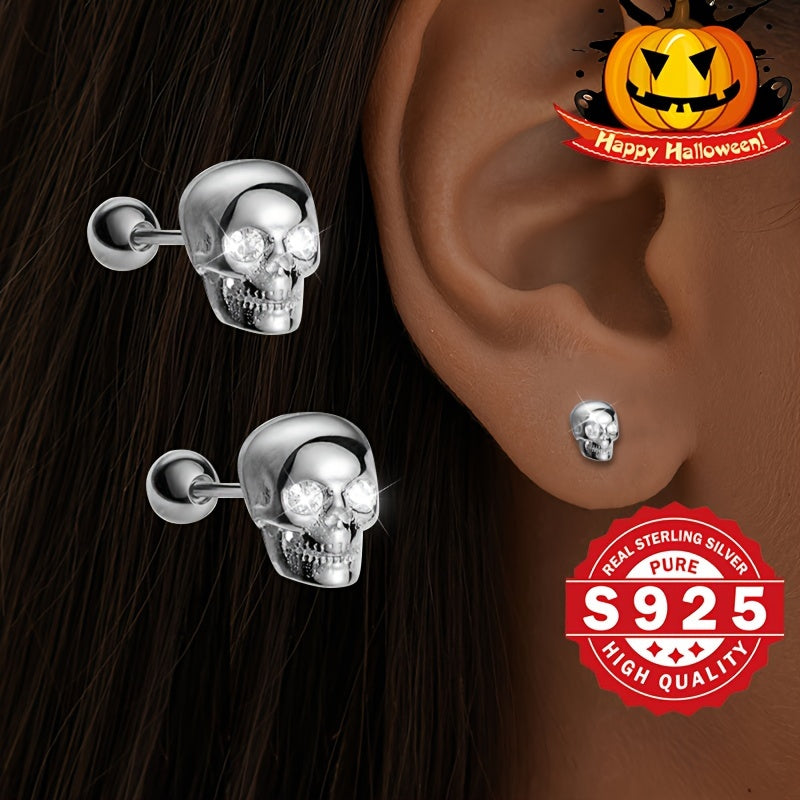 Classic Skull Head Earrings perfect for Halloween with a low profile design. Made of s925 silver with zirconia inlay for a fashionable and metallic look.