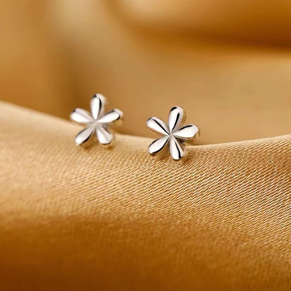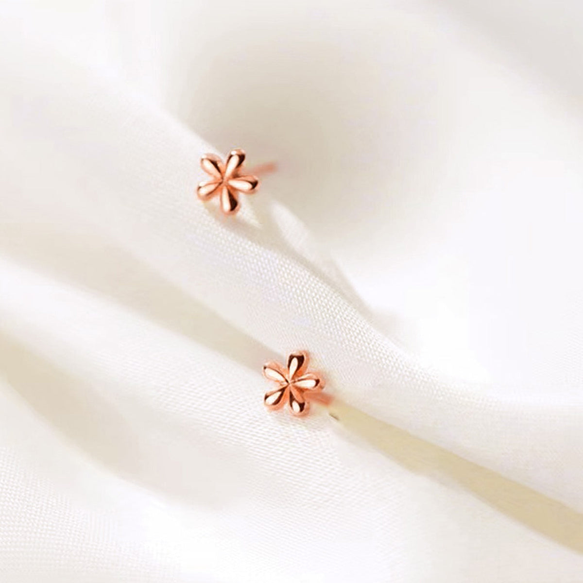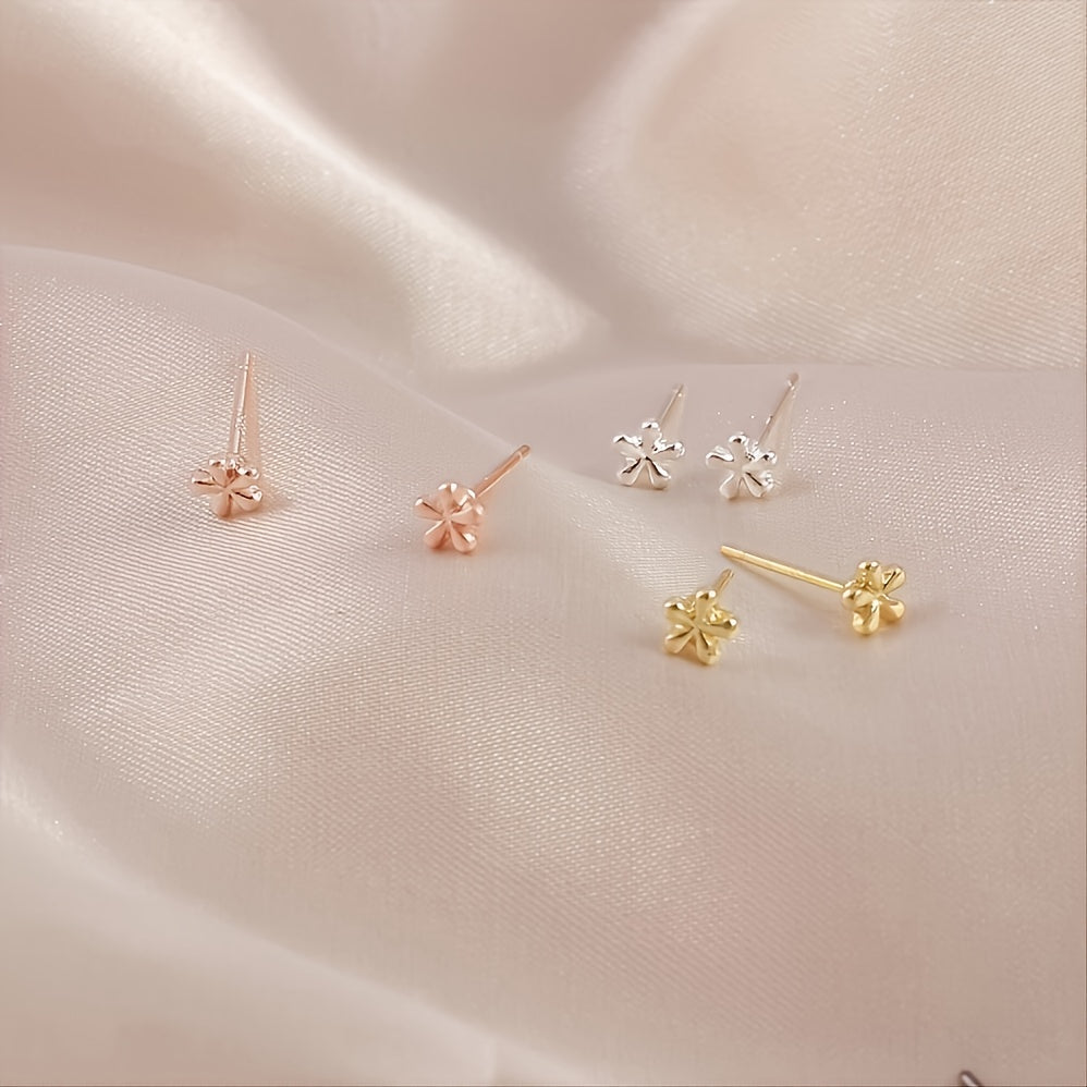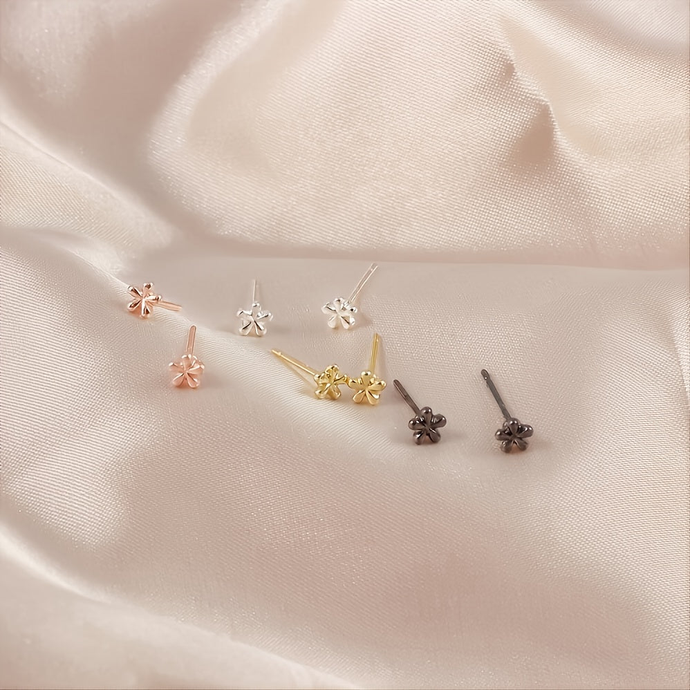 Elegant small floral stud earrings featuring a golden and silver design, perfect for women's niche fashion.