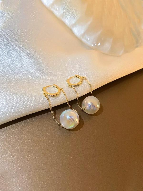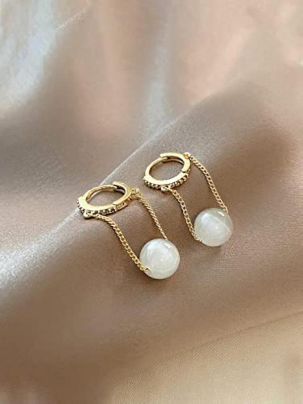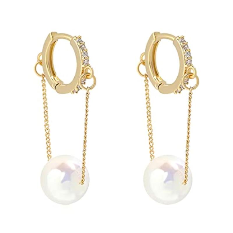 Add a touch of elegance with these small hoop earrings featuring a delicate chain and pearl drop design.