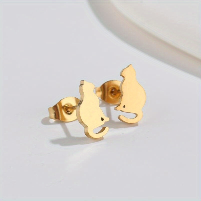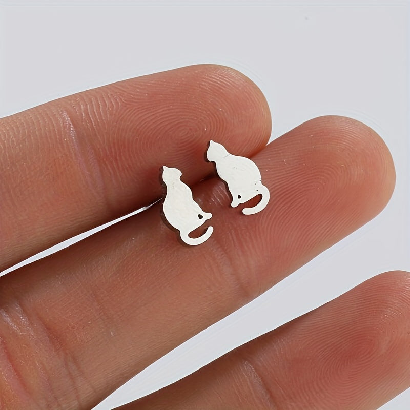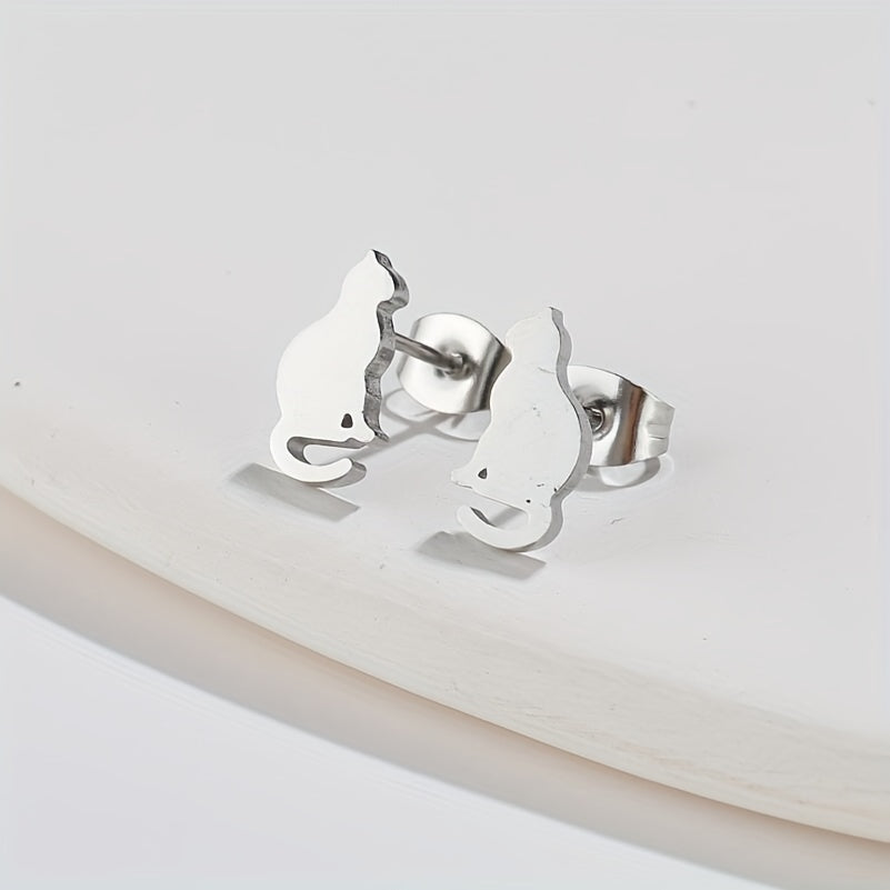 Add a touch of feline charm with these minimalist cat stud earrings. Perfect pet cat accessories for men.