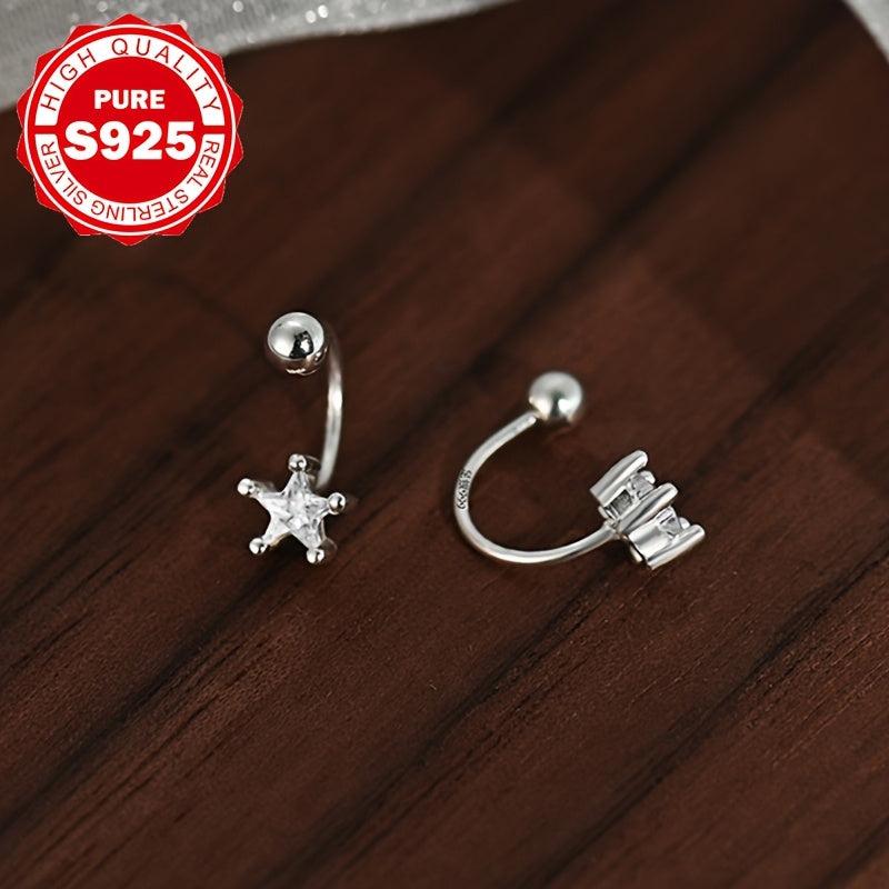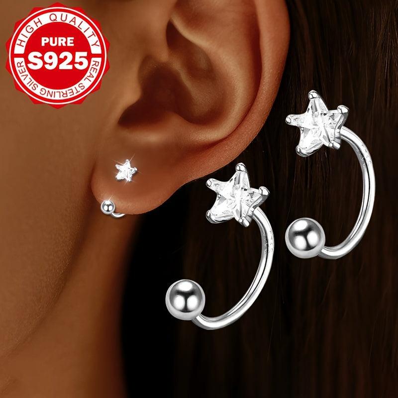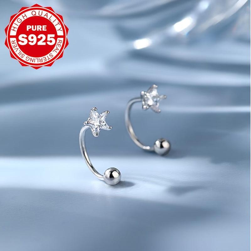 Small Star Round Zirconia Earrings - S925 Pure Silver