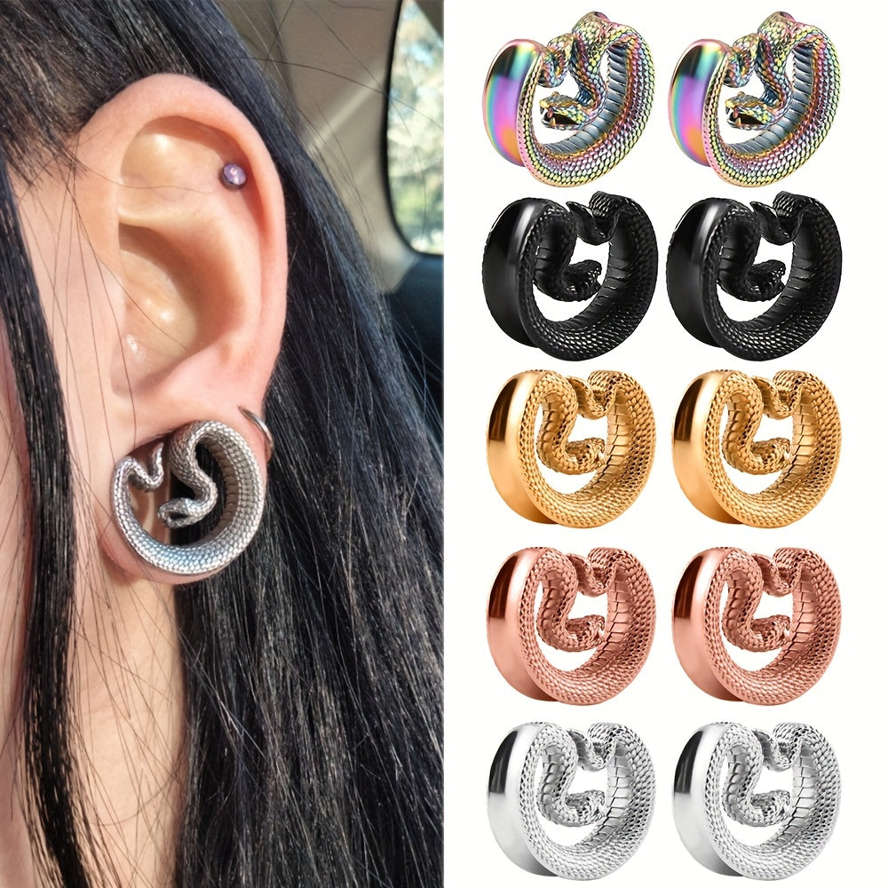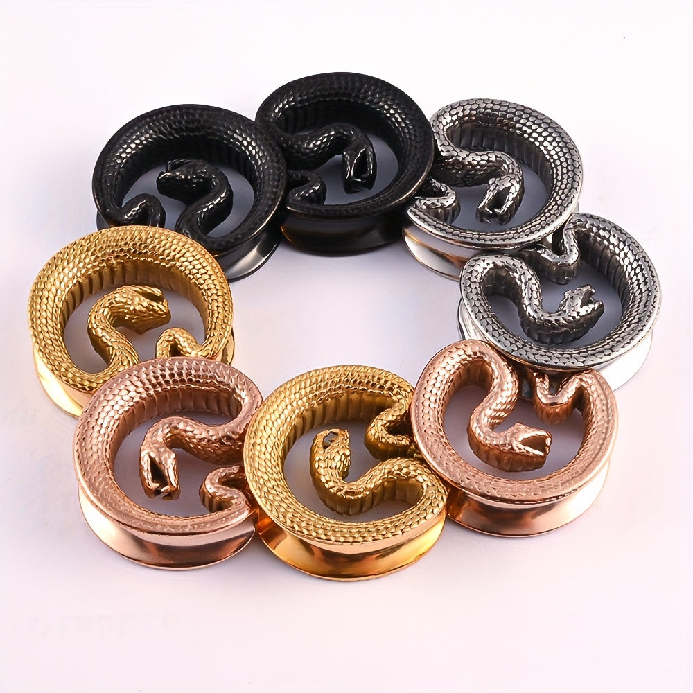 These snake-shaped saddle ear expanders are crafted from stainless steel, perfect for ear stretching. Elevate your style with this unique pair!