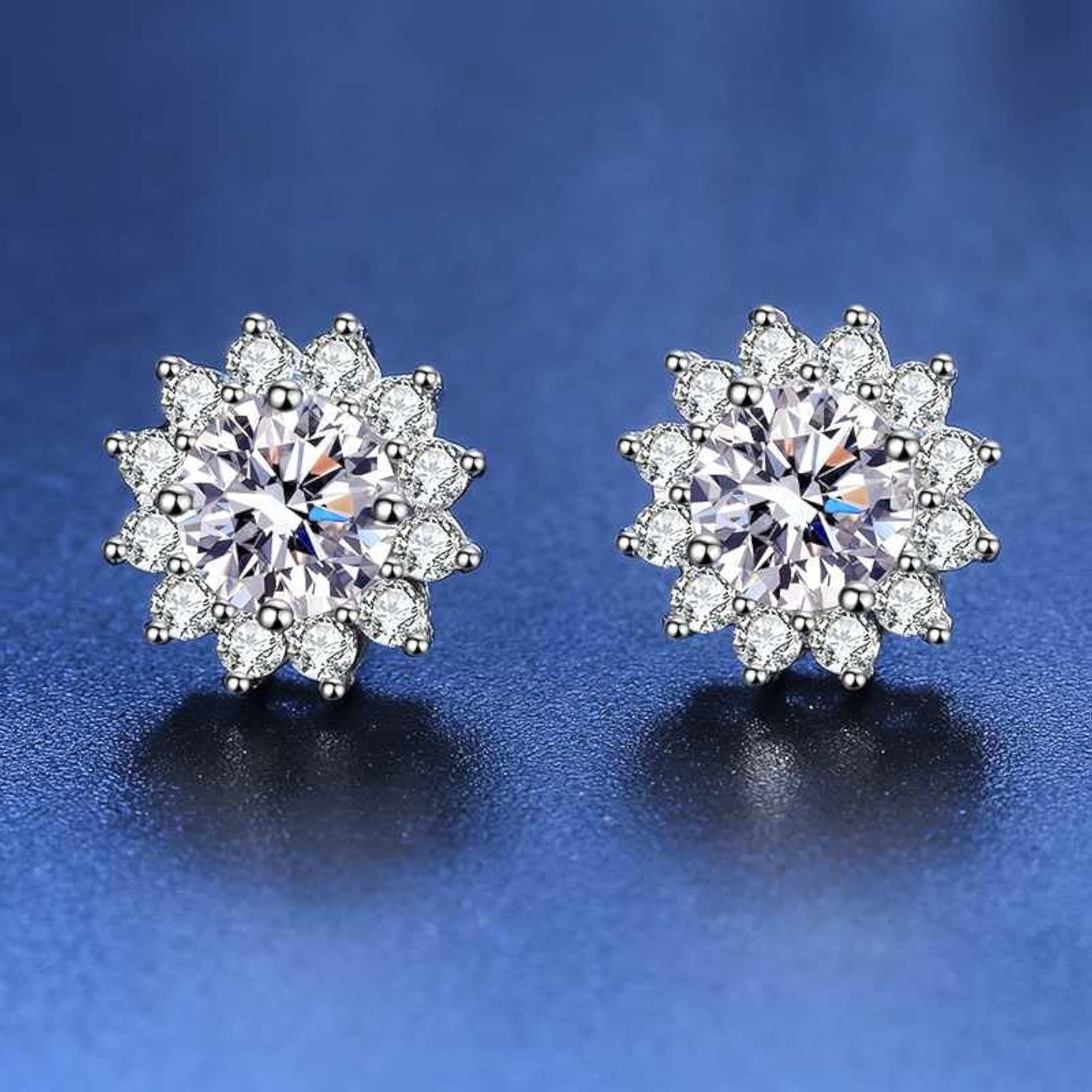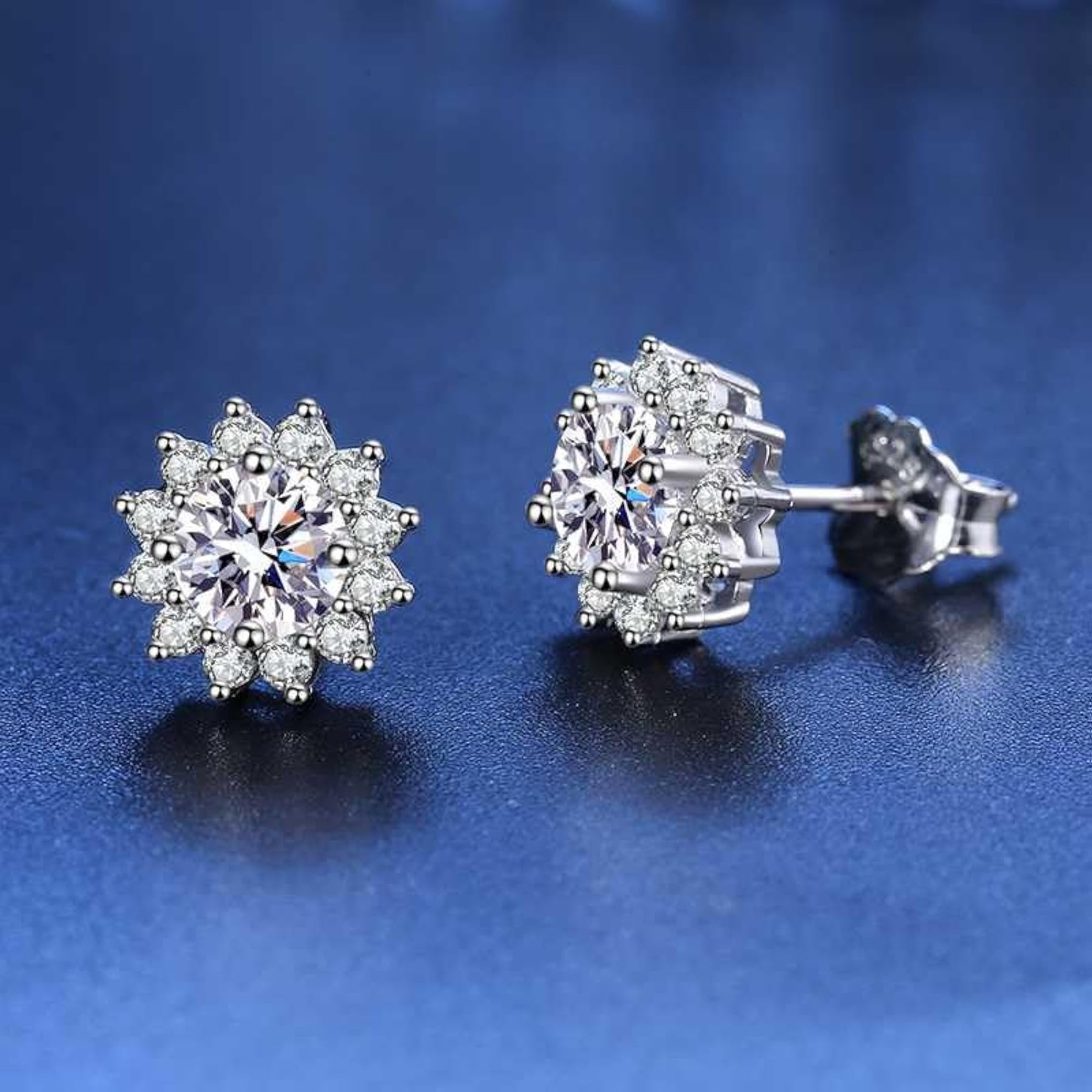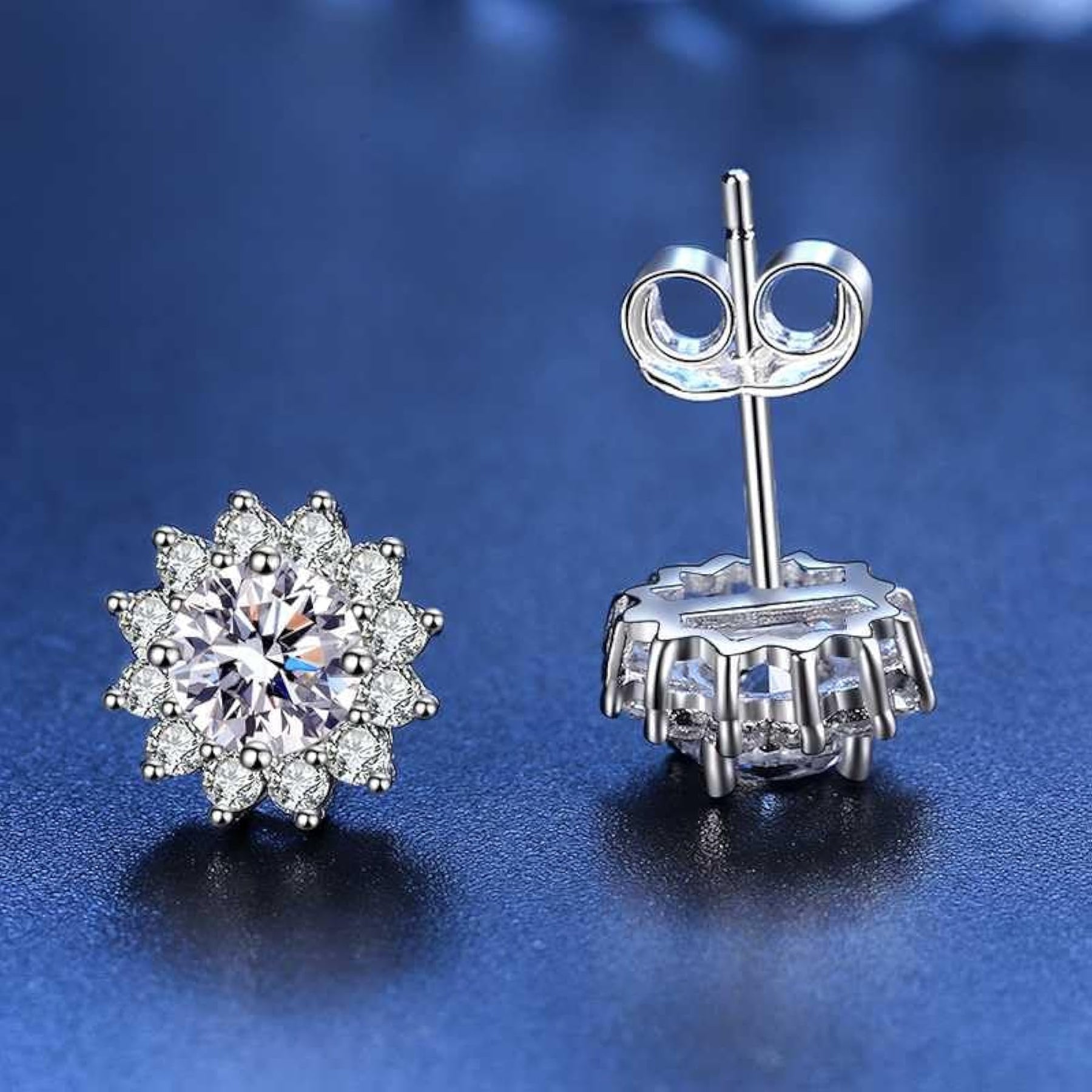 These stunning solitaire cluster plated stud earrings are hypoallergenic, perfect for sensitive ears. They feature a butterfly back closure for secure wear.
