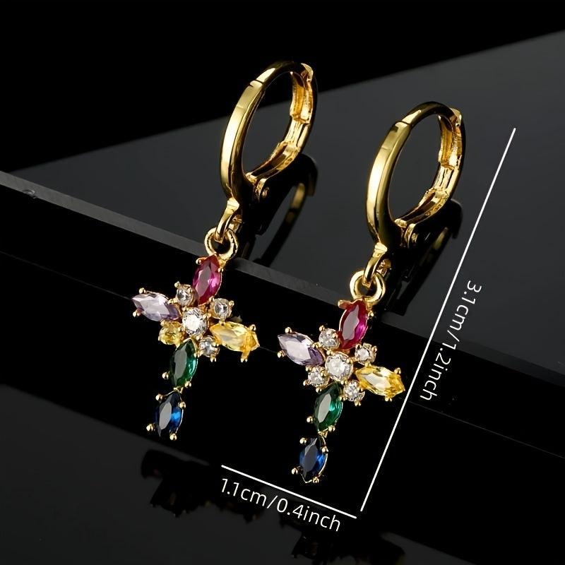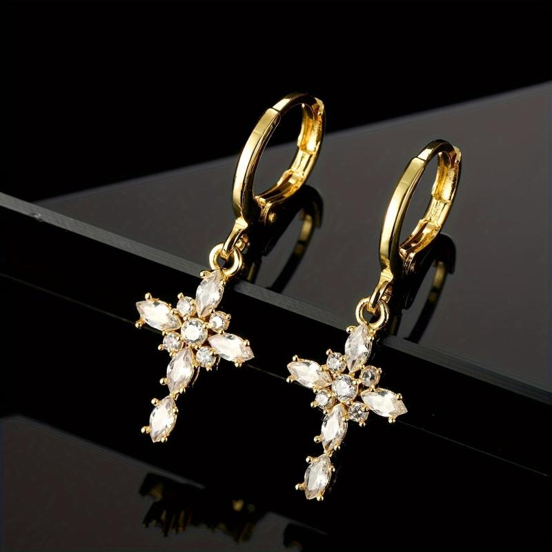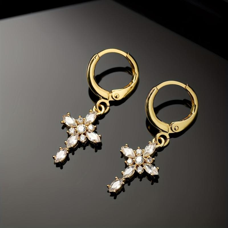 Add a touch of sparkle to your outfit with these elegant cross hoop earrings featuring sparkling rhinestone studs. Perfect for a night out or special occasions.