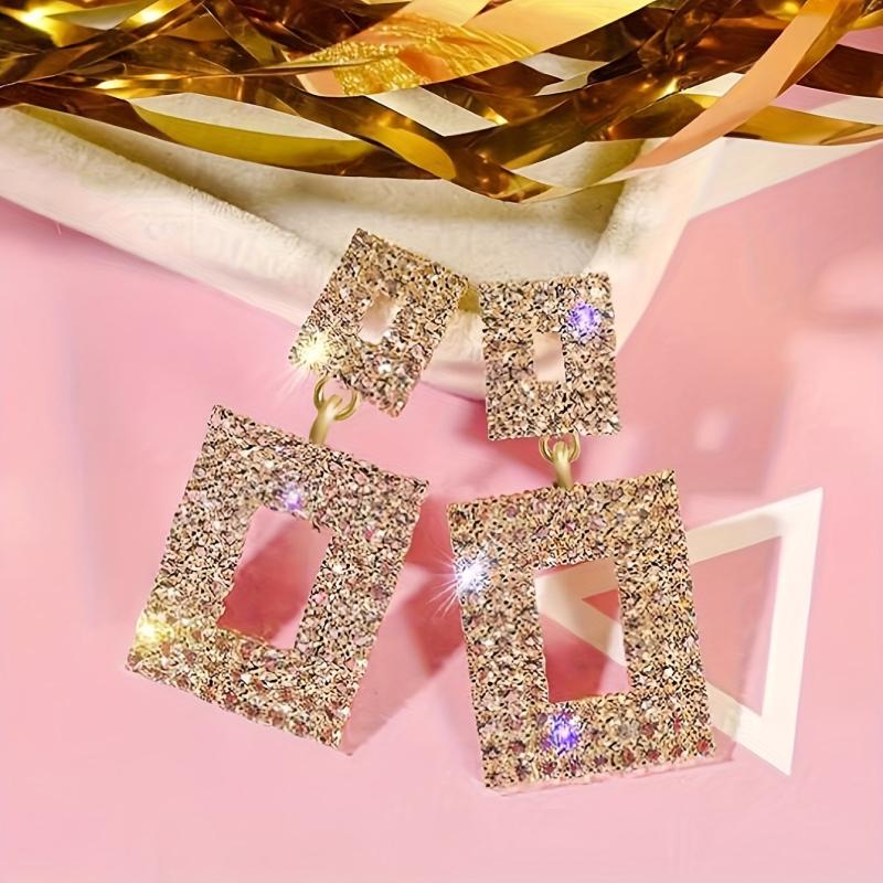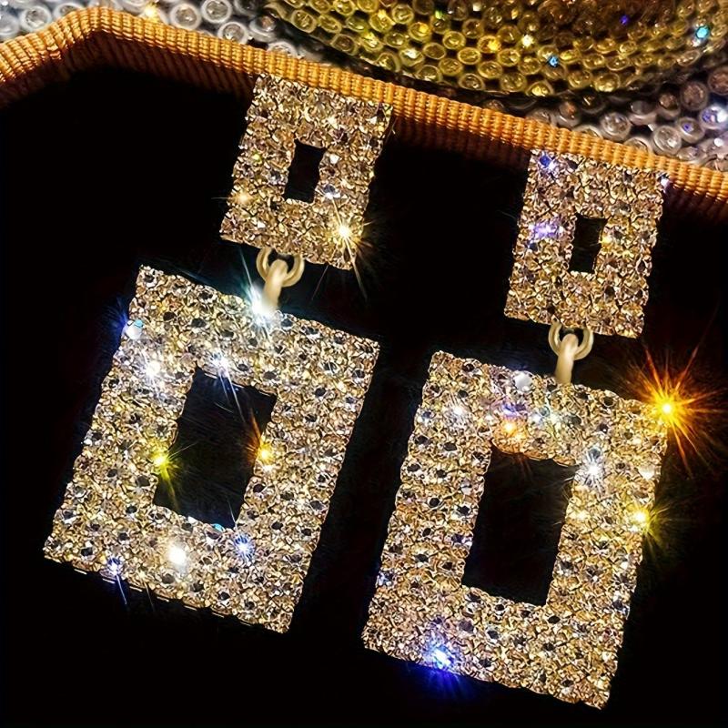 Add a touch of glam to your outfit with these sparkling rhinestone square stud earrings. Perfect for any occasion.