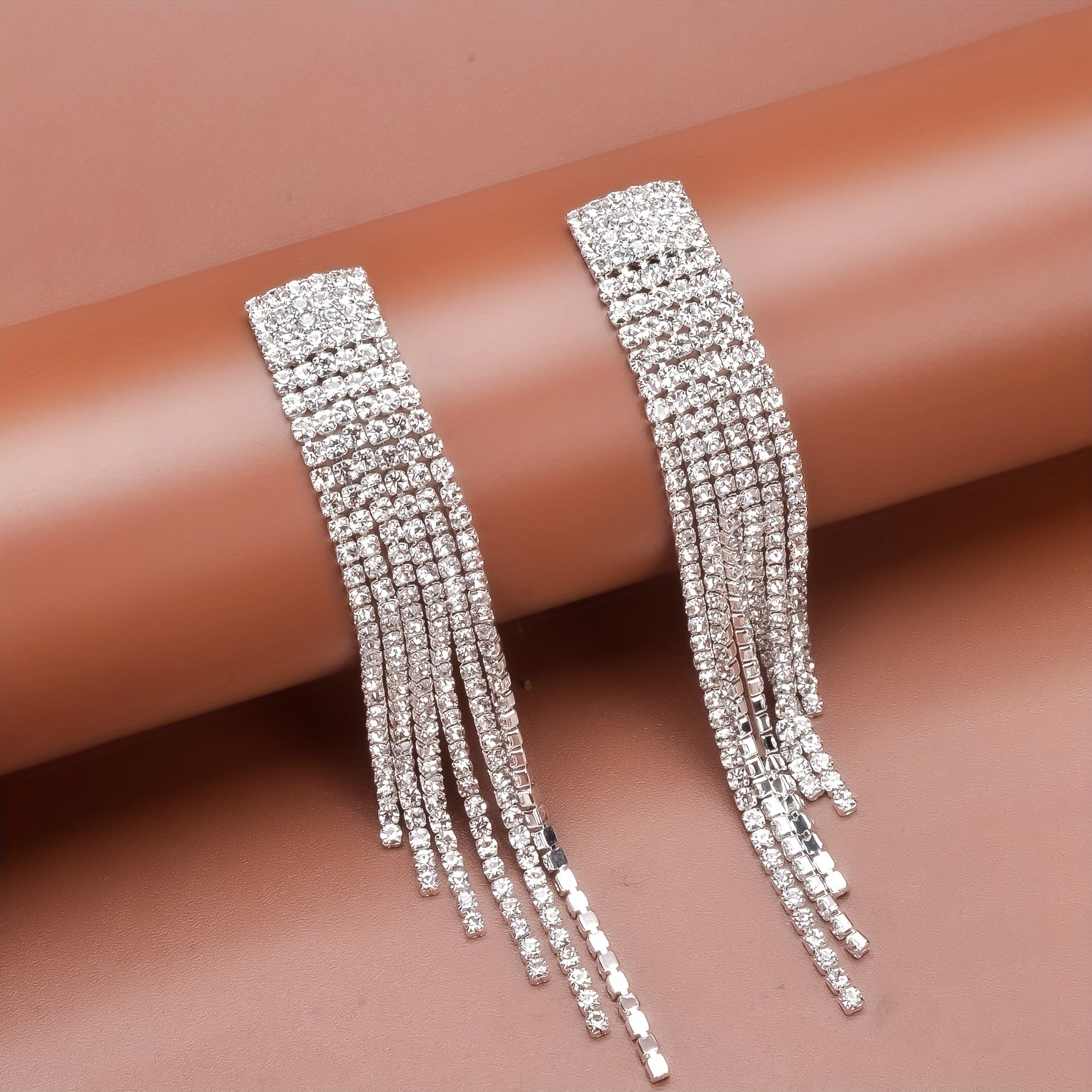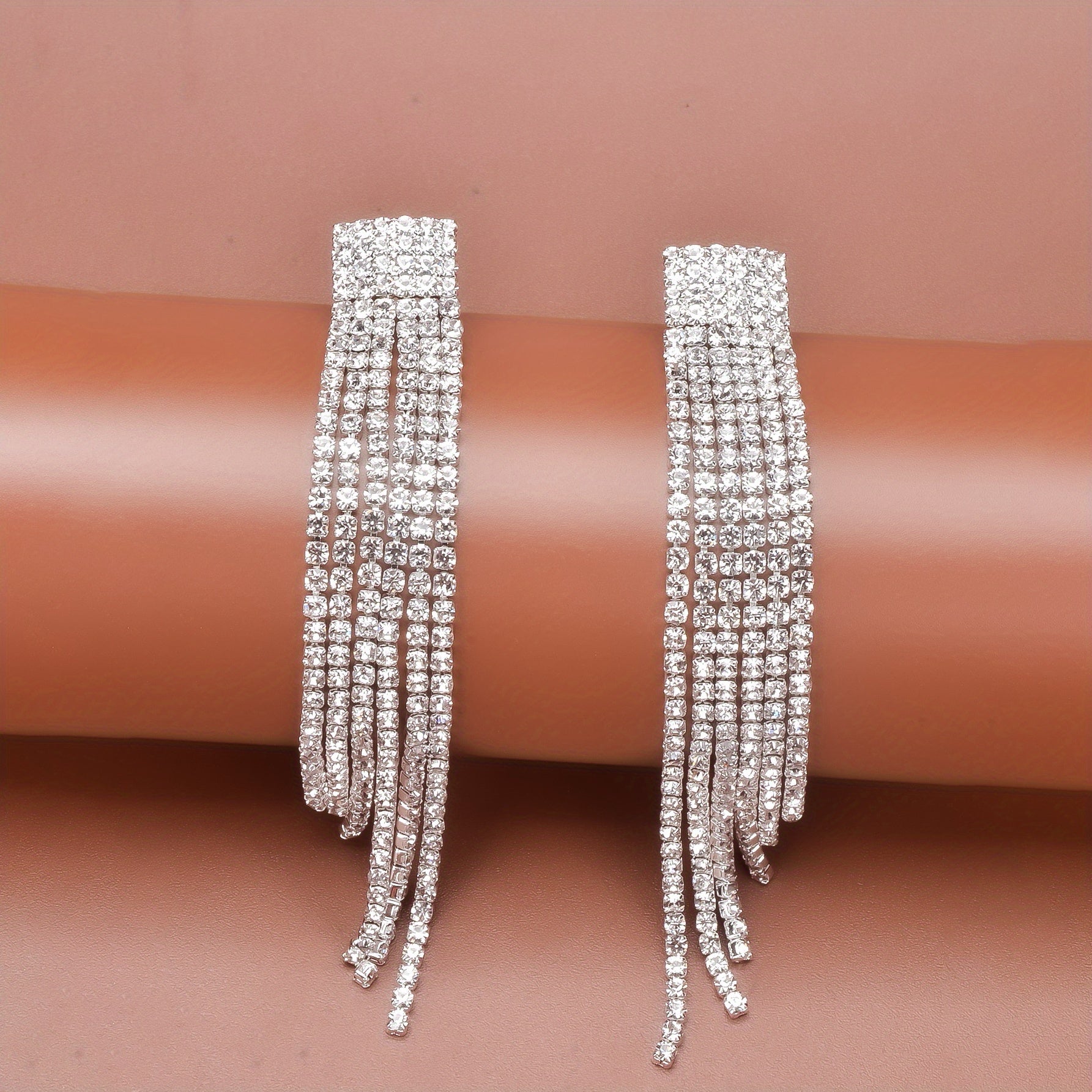 Elevate your style with these elegant tassel earrings adorned with sparkling rhinestones. Perfect gift for females.