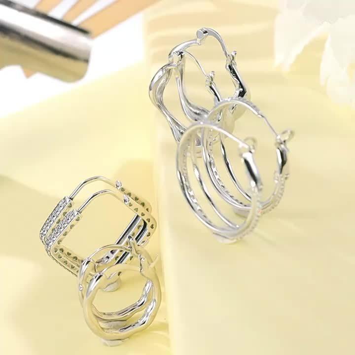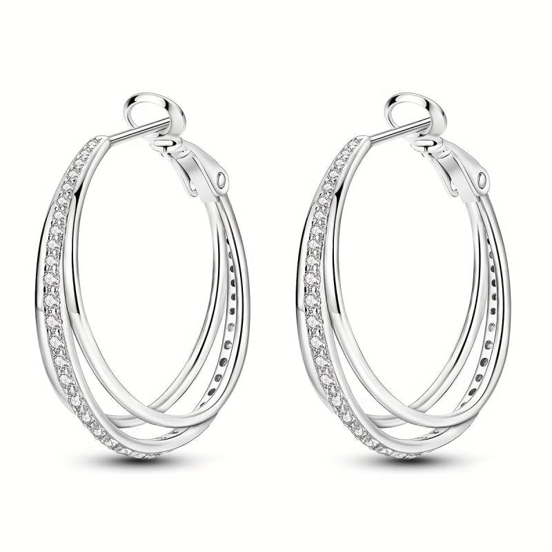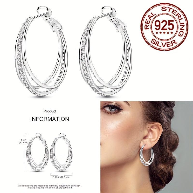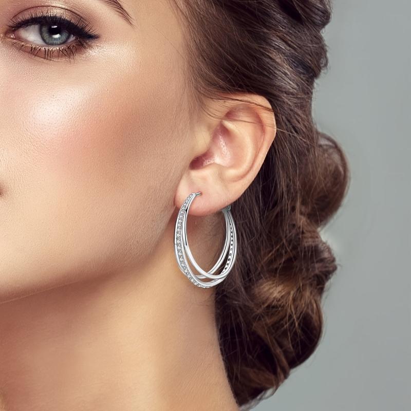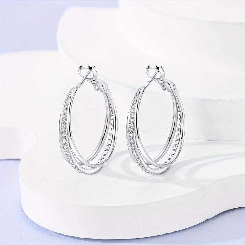 These gorgeous earrings are made of 925 sterling silver and feature a triple hoop design. They are perfect for an engagement party, wedding or as a special gift.