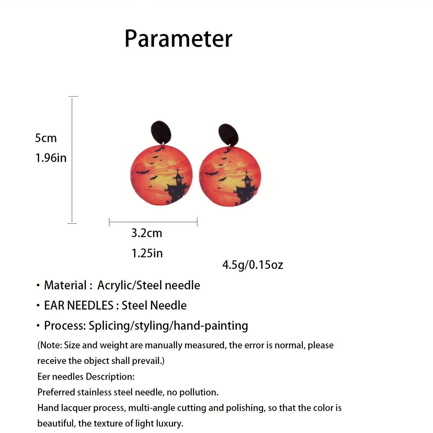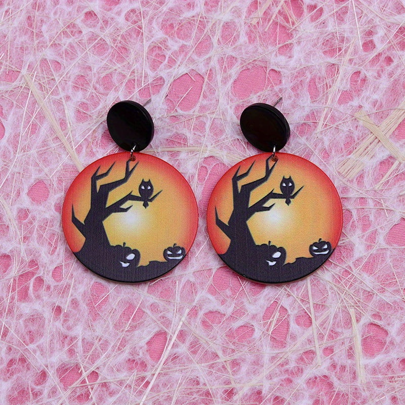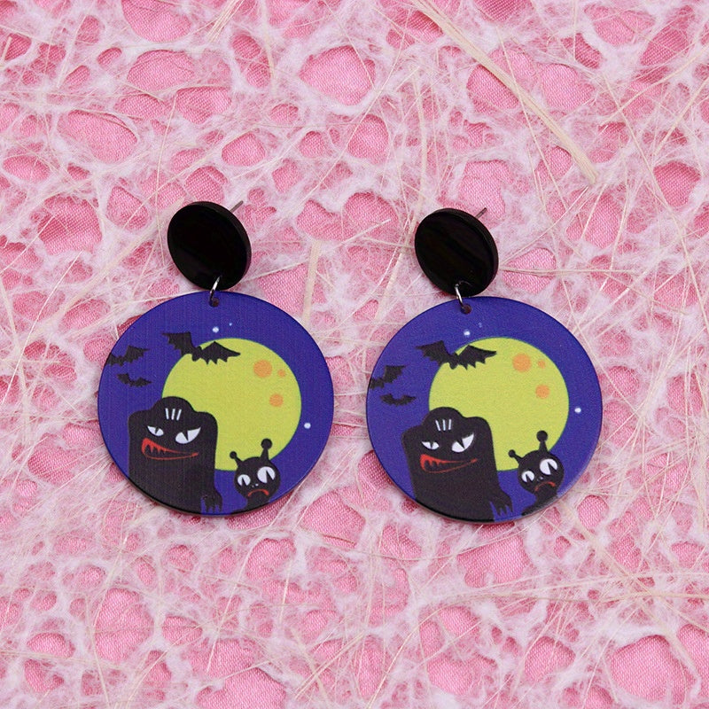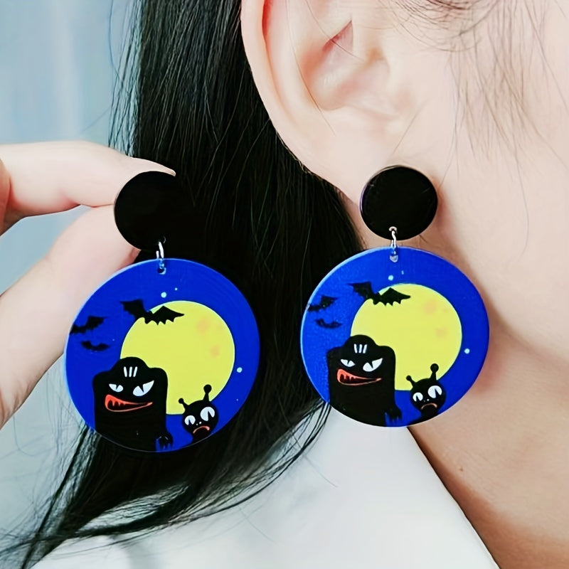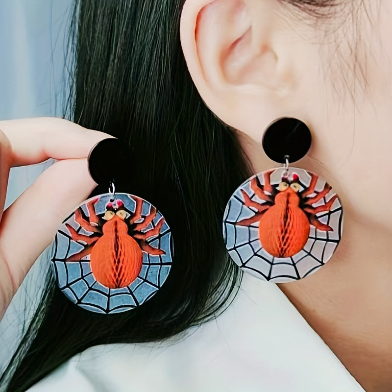 These spooky dangle earrings are perfect for Halloween or any retro boho look. Made of acrylic, they feature moon, bat, and spider charms that add a creative touch to your outfit. A great gift idea for females with a love for unique jewelry.