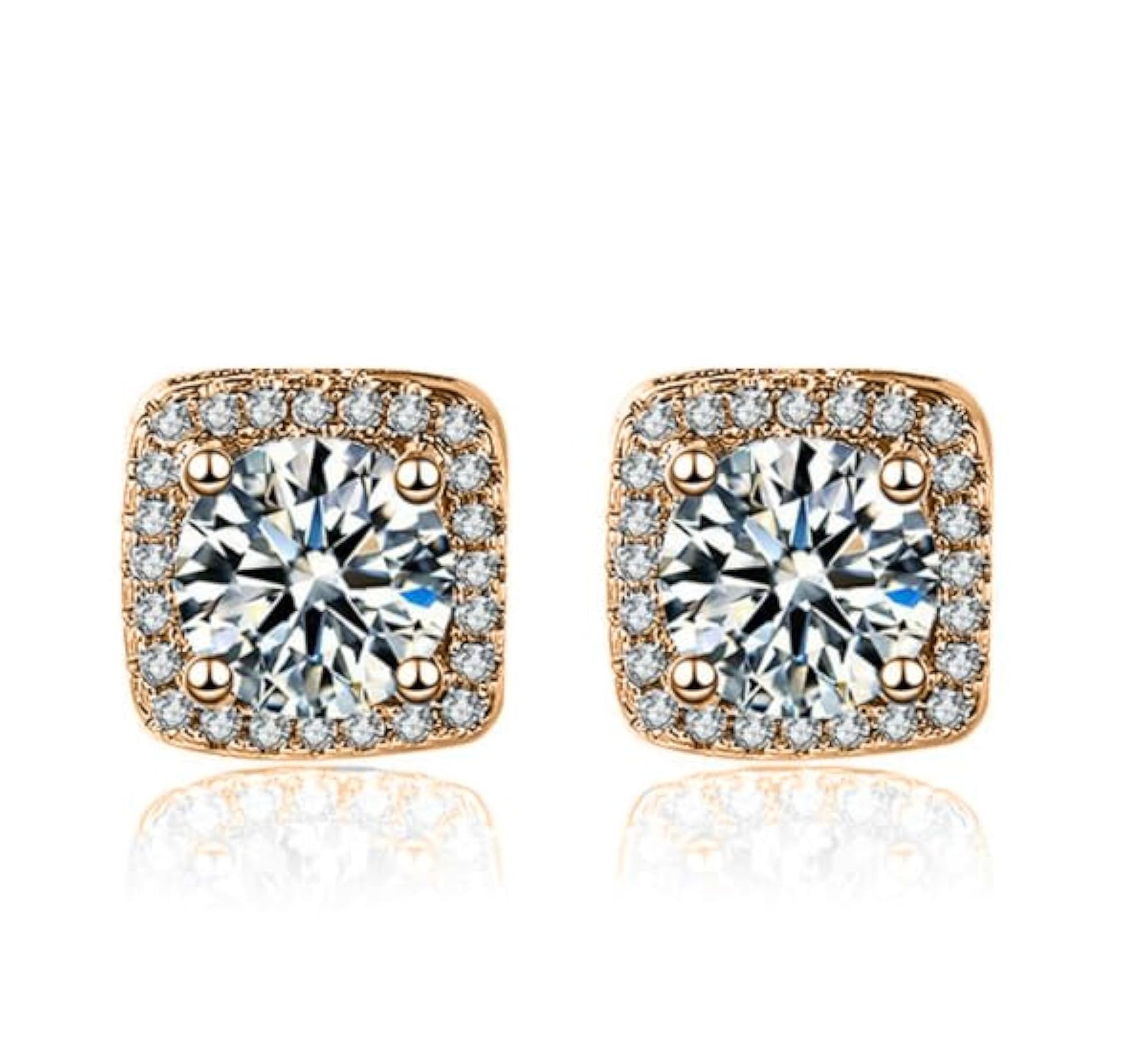 Square Halo Zirconia Stud Earrings, Hypoallergenic, Geometric Design