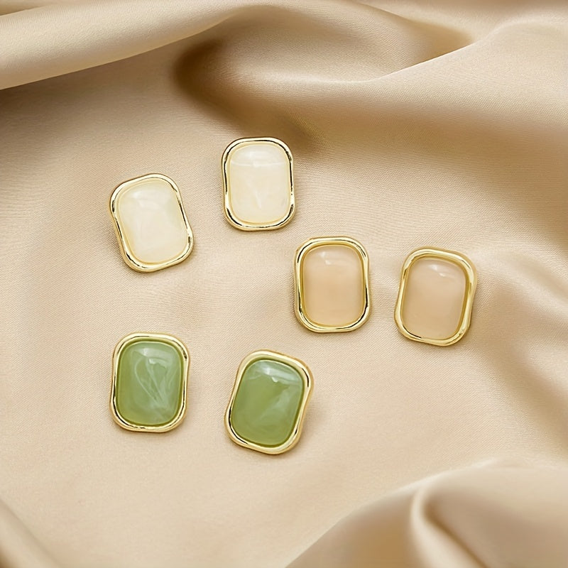 Add a touch of vintage charm with these square resin stud earrings. Perfect gift for those who love retro ear jewelry.