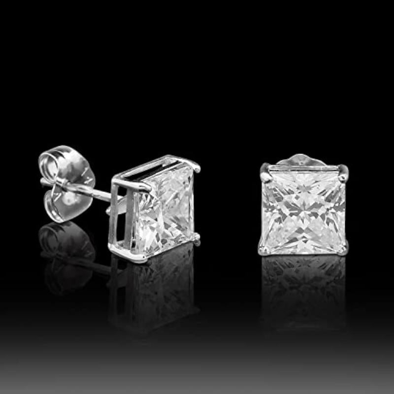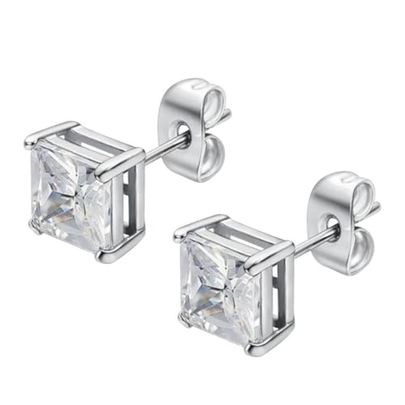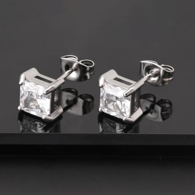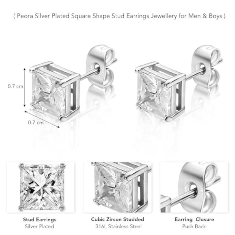 Elevate your style with these silver plated stud earrings featuring cubic zirconia studded square shape design. Perfect for adding a touch of glamour to any outfit.