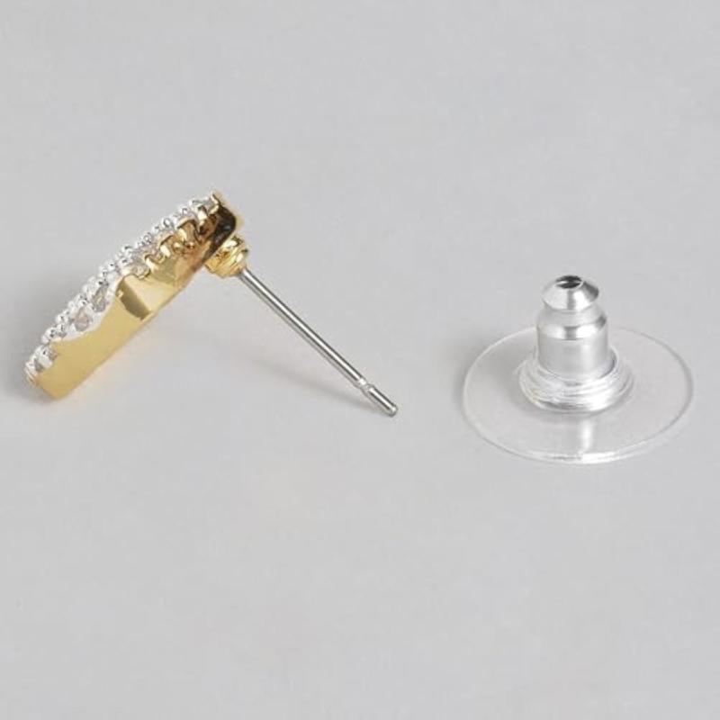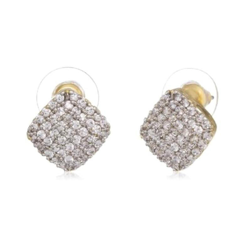 Elegant square stud earrings featuring rhodium plated American diamond with stones. Perfect for both men and women.