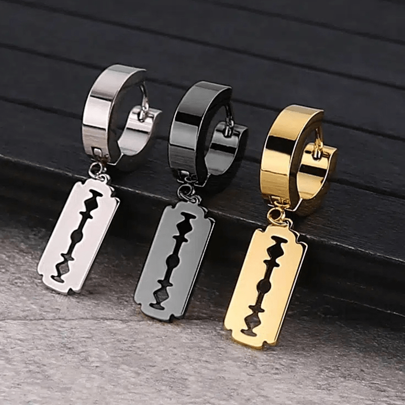 Unique and edgy, these blade pendant earrings are perfect for a funky, punk, gothic, or hip hop style. Made from stainless steel, these earrings are durable and stylish accessories.