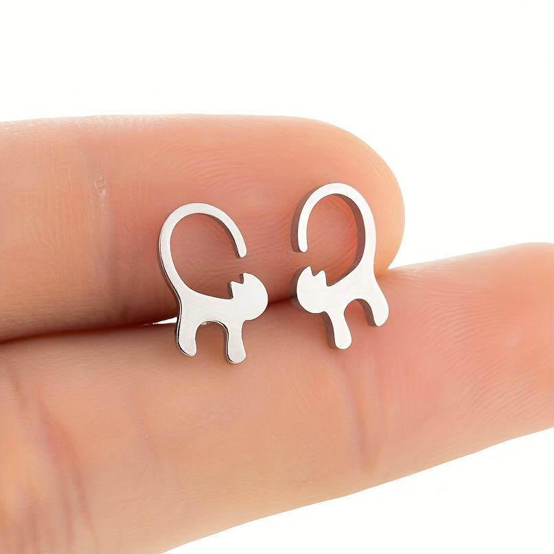 Add a touch of personality to your style with these stainless steel cat stud earrings.