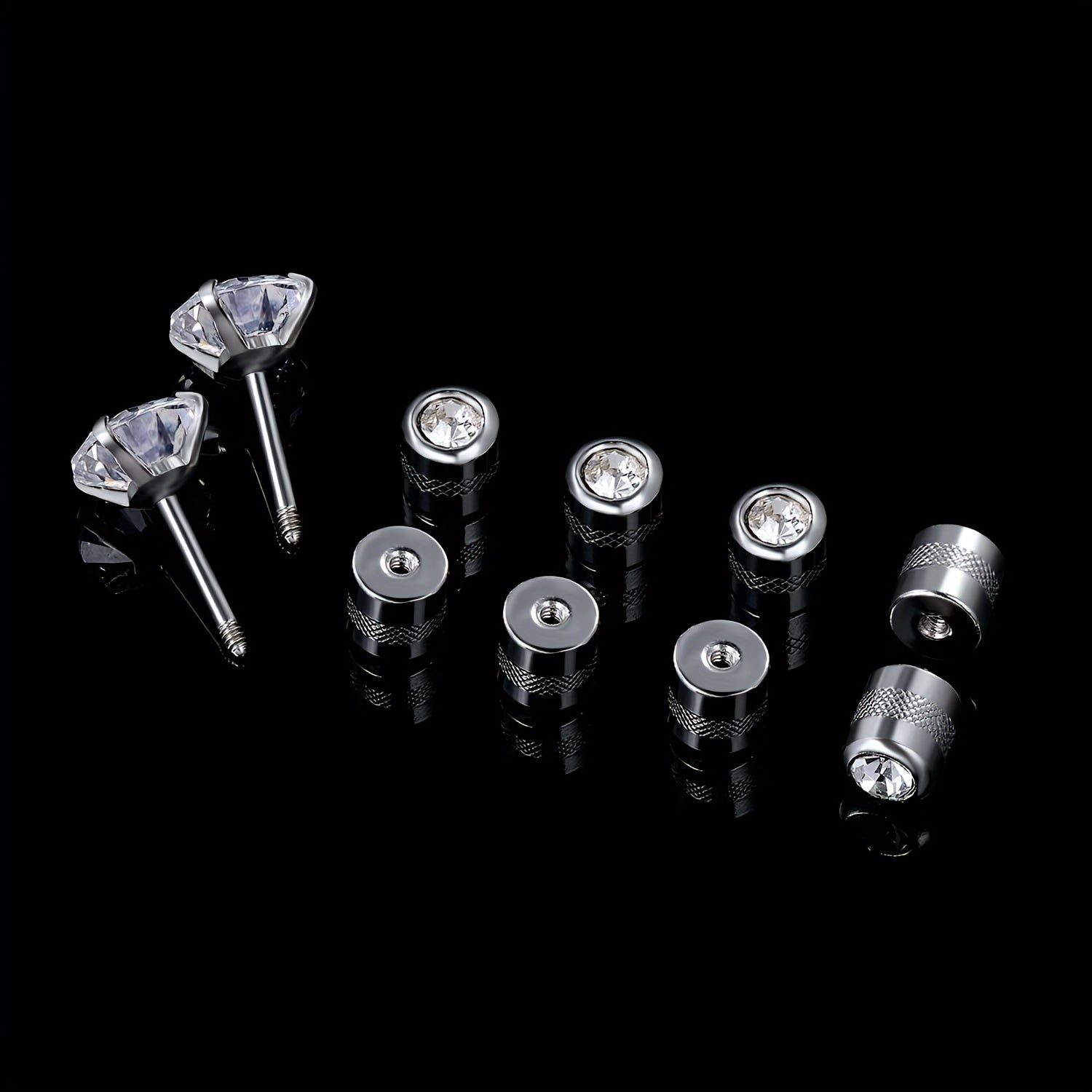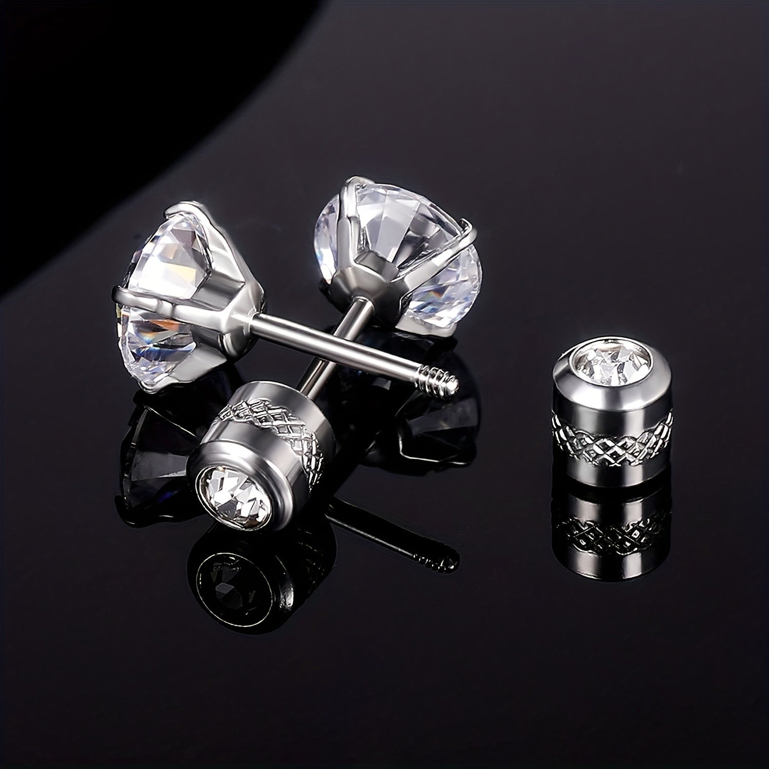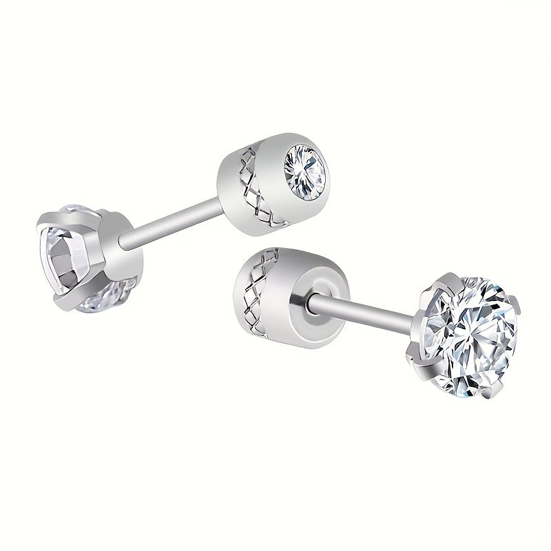 Add a touch of sparkle to your look with these stylish stainless steel earrings featuring crystal zircon accents. Perfect for casual occasions or adding a touch of modern elegance to your outfit.