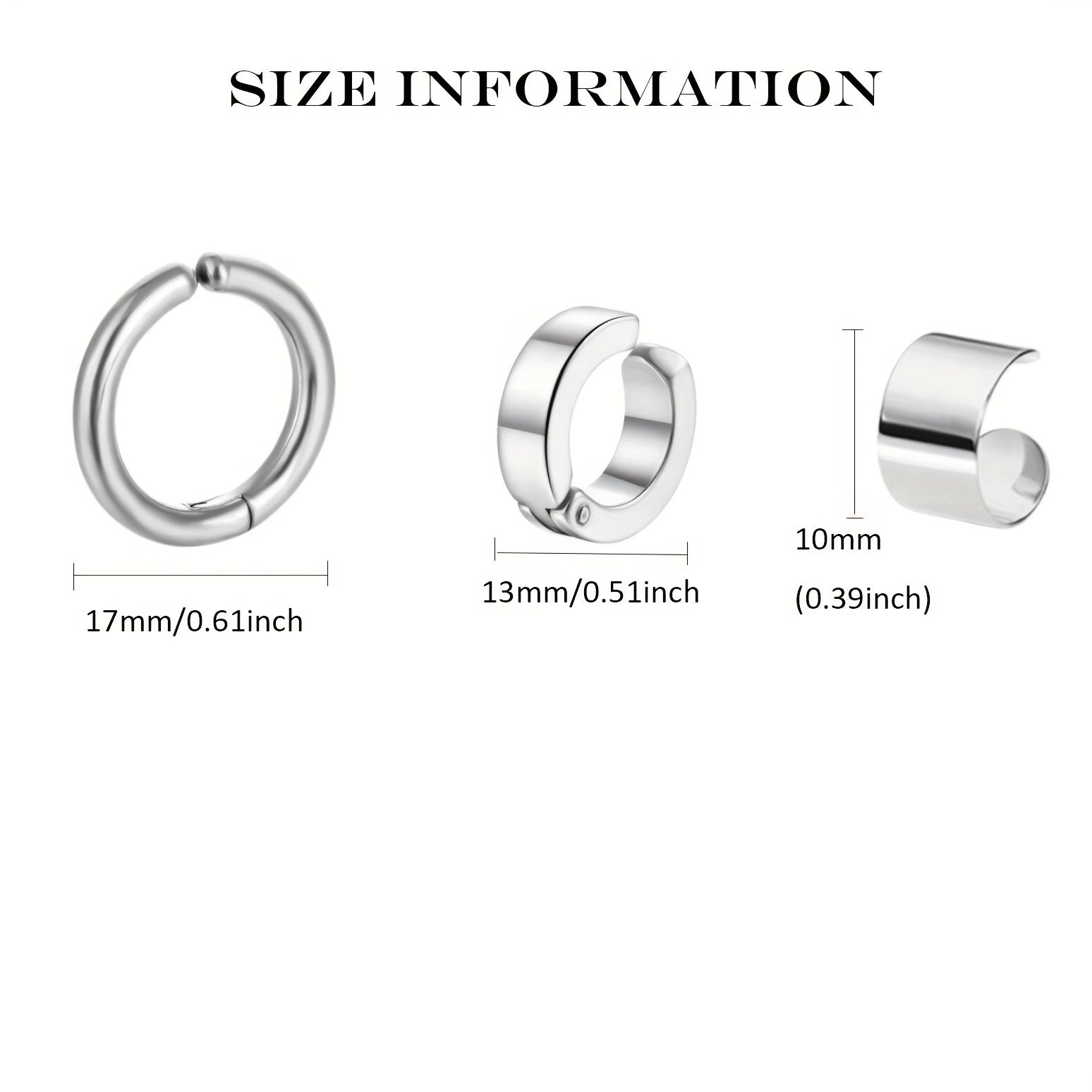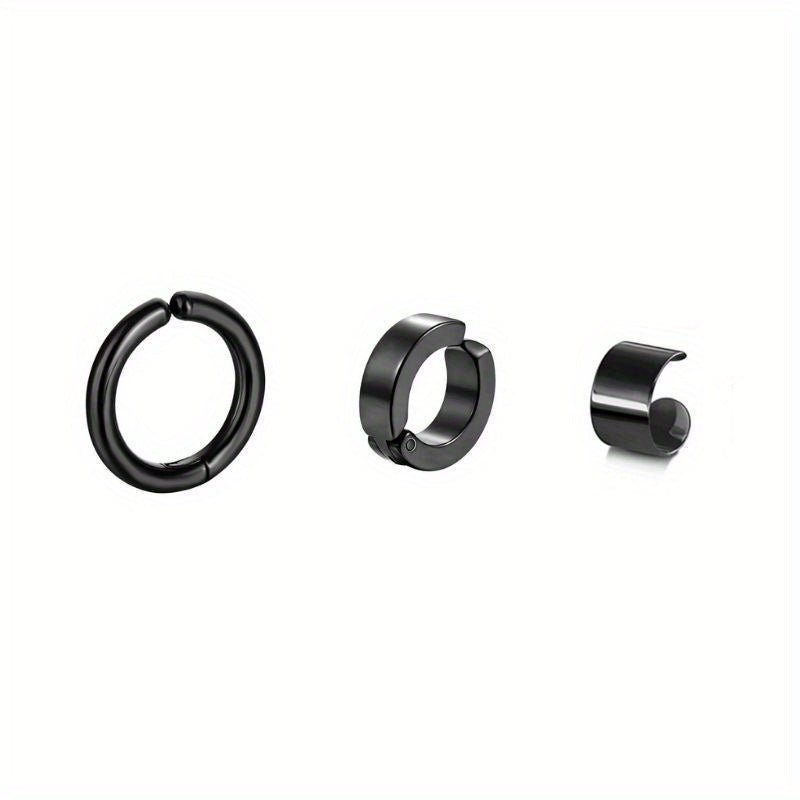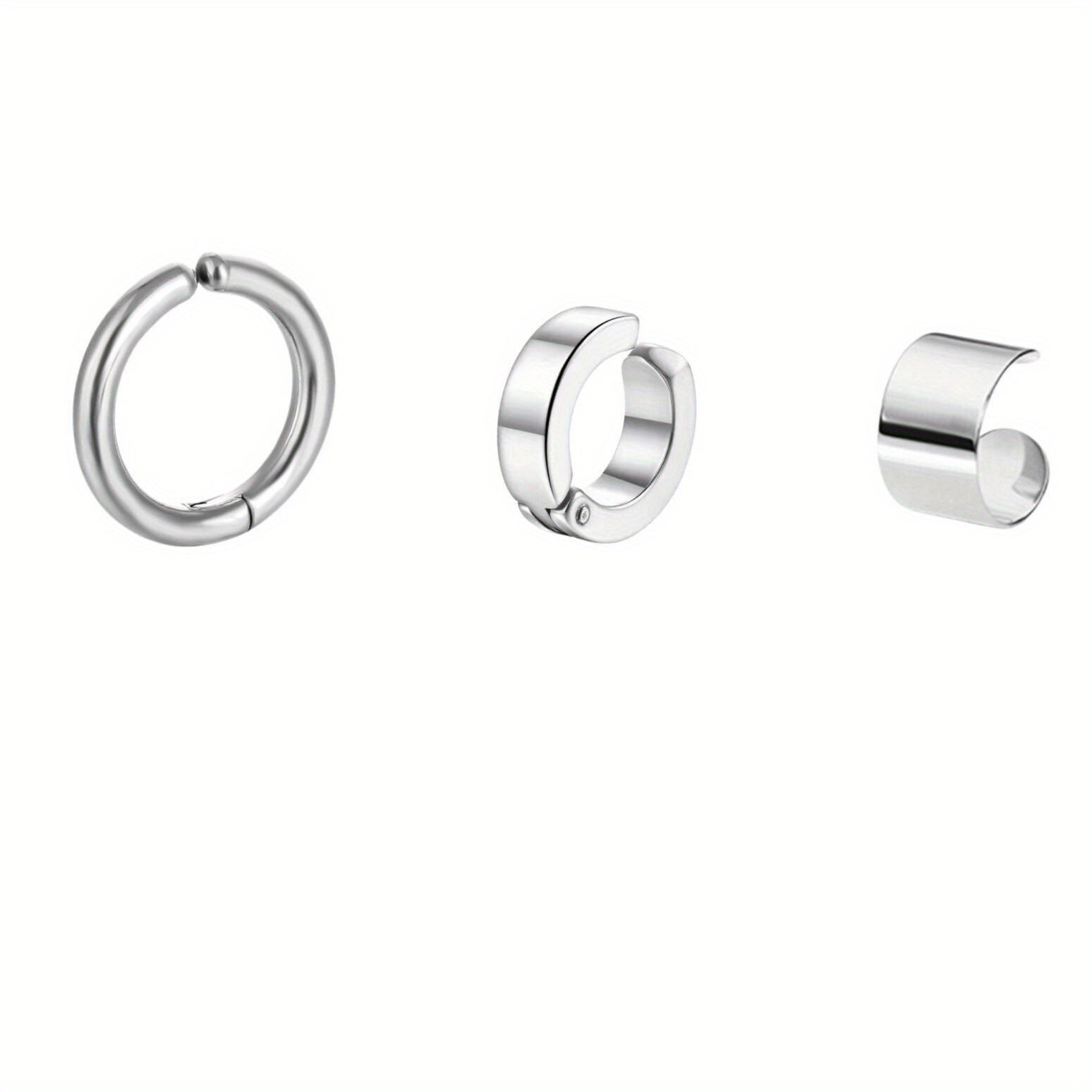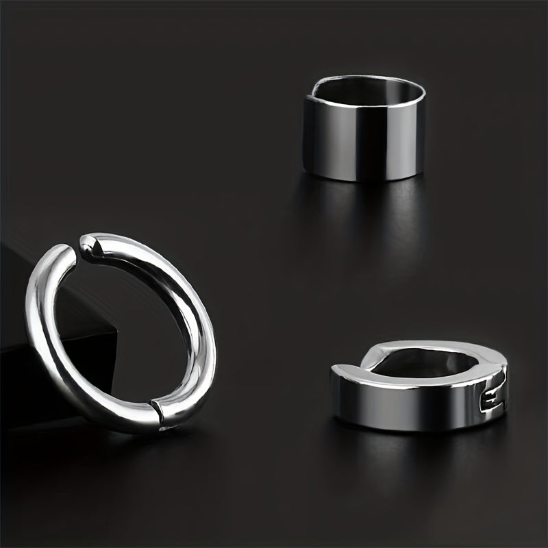 This three-piece set of stainless steel ear clips is perfect for those without ear piercings. The glossy finish adds a touch of elegance to any outfit. Suitable for both men and women.