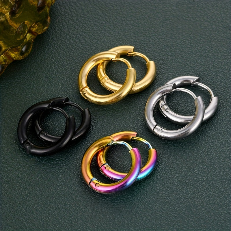 Add a touch of style with these glossy stainless steel earrings for men. Perfect for a hip hop or punk look.