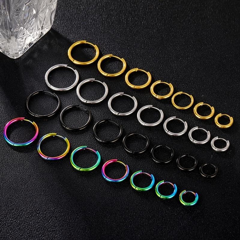Add a touch of edgy style to your look with these stainless steel geometric round earrings. The glossy finish and hip hop punk design make them a perfect accessory for those looking to showcase their unique personality.